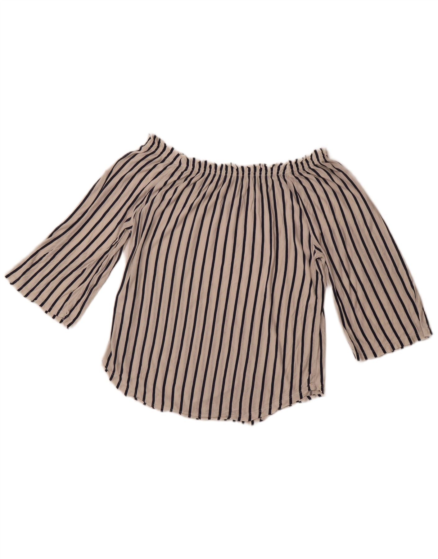 BENETTON Dame 3/4 ærme off Shoulder Top UK 14 Medium hvid stribet