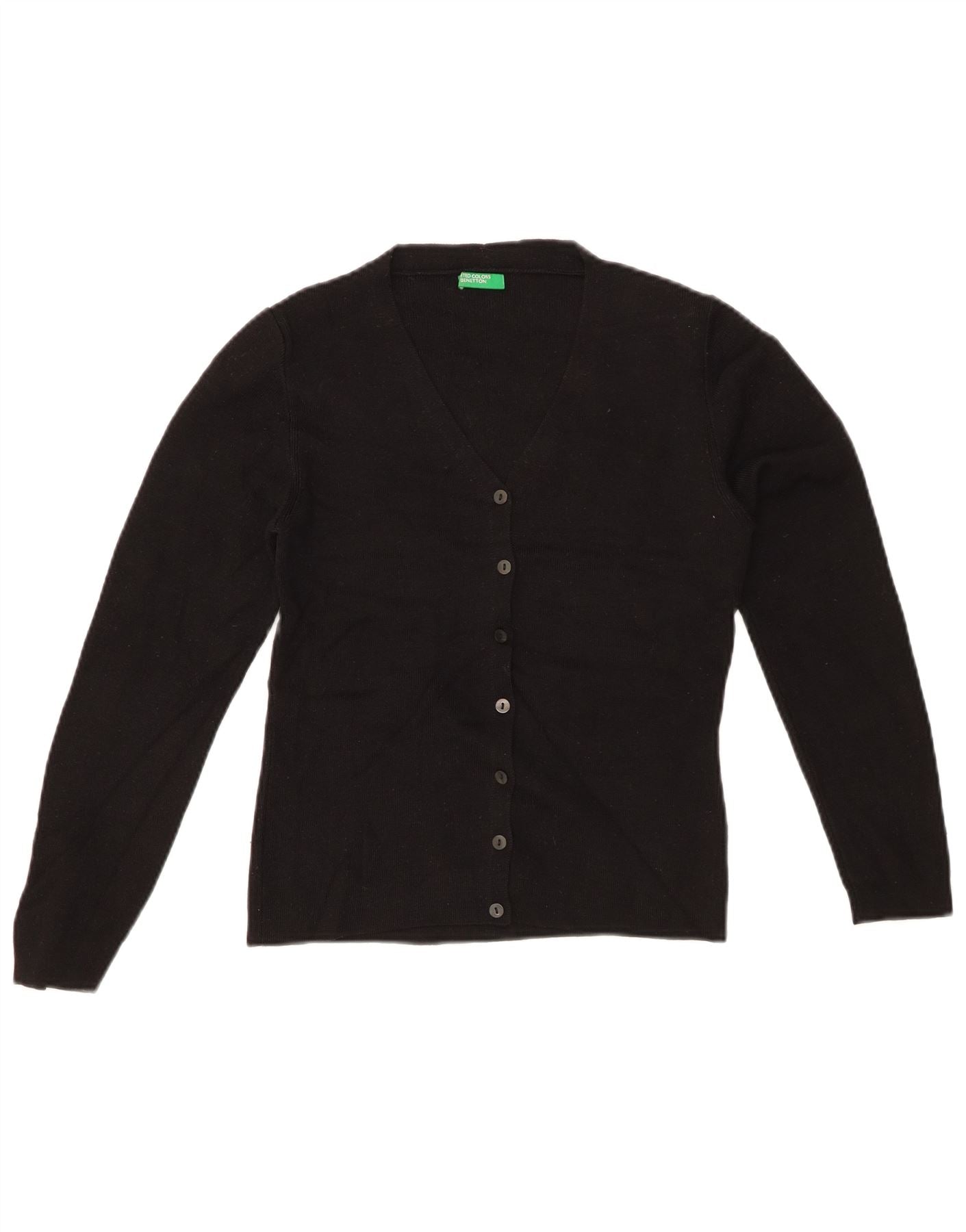BENETTON Dame Cardigan Sweater UK 10 Lille sort uld