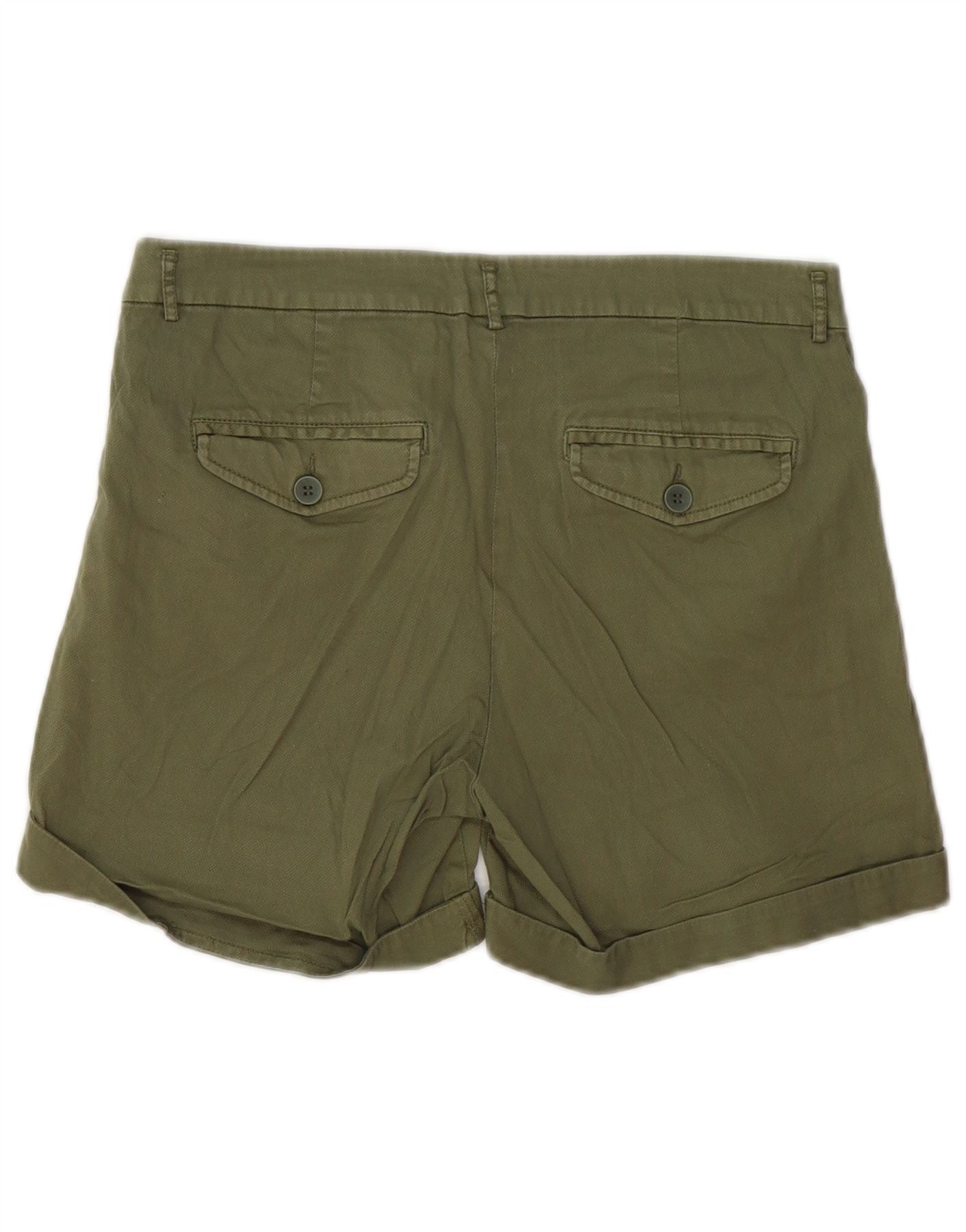 BENETTON Chino Shorts til kvinder UK 10 Small W30 Khaki Bomuld