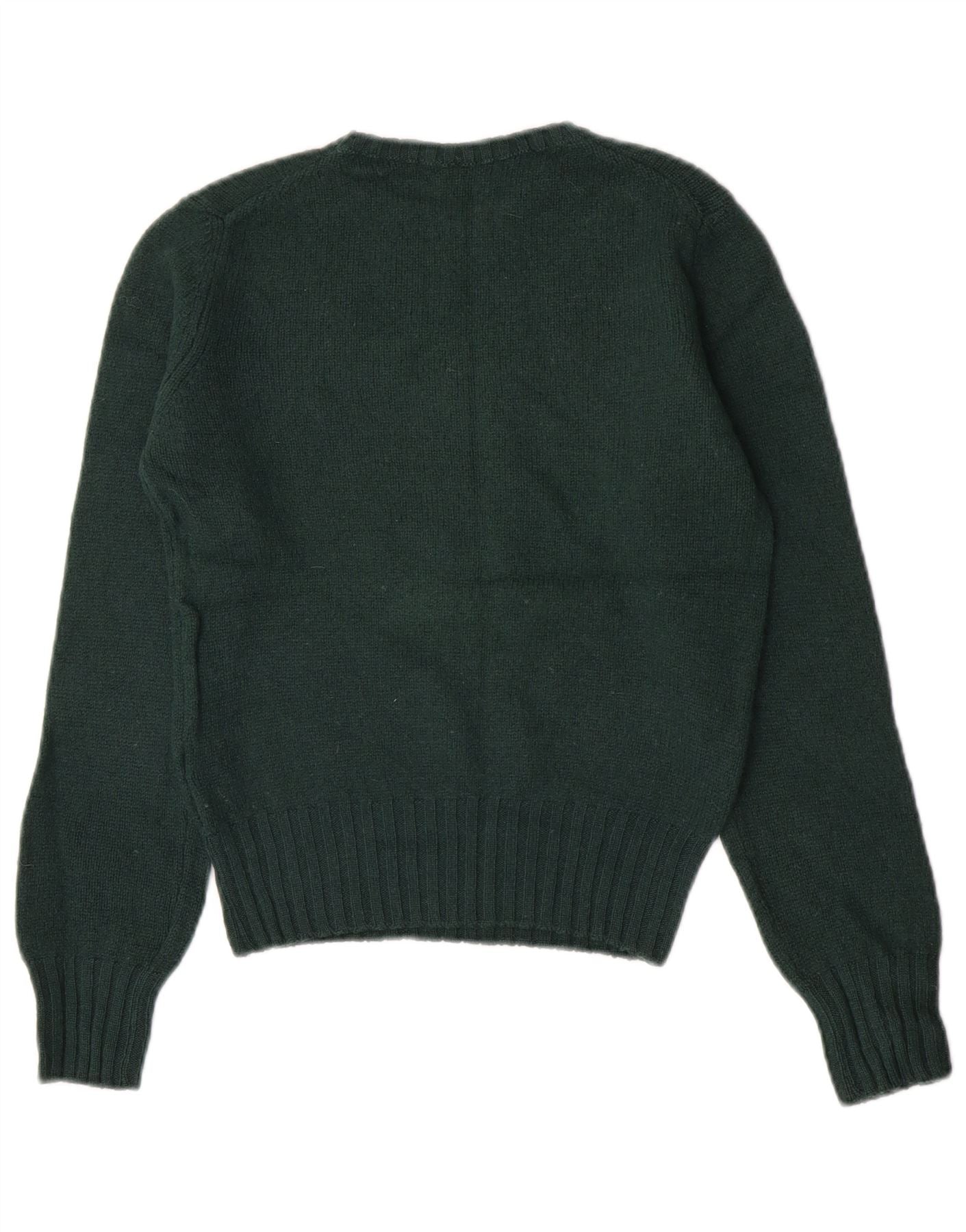Benetton Womens Crop Graphic Crew Neck Jumper Sweater UK 10 Small Green