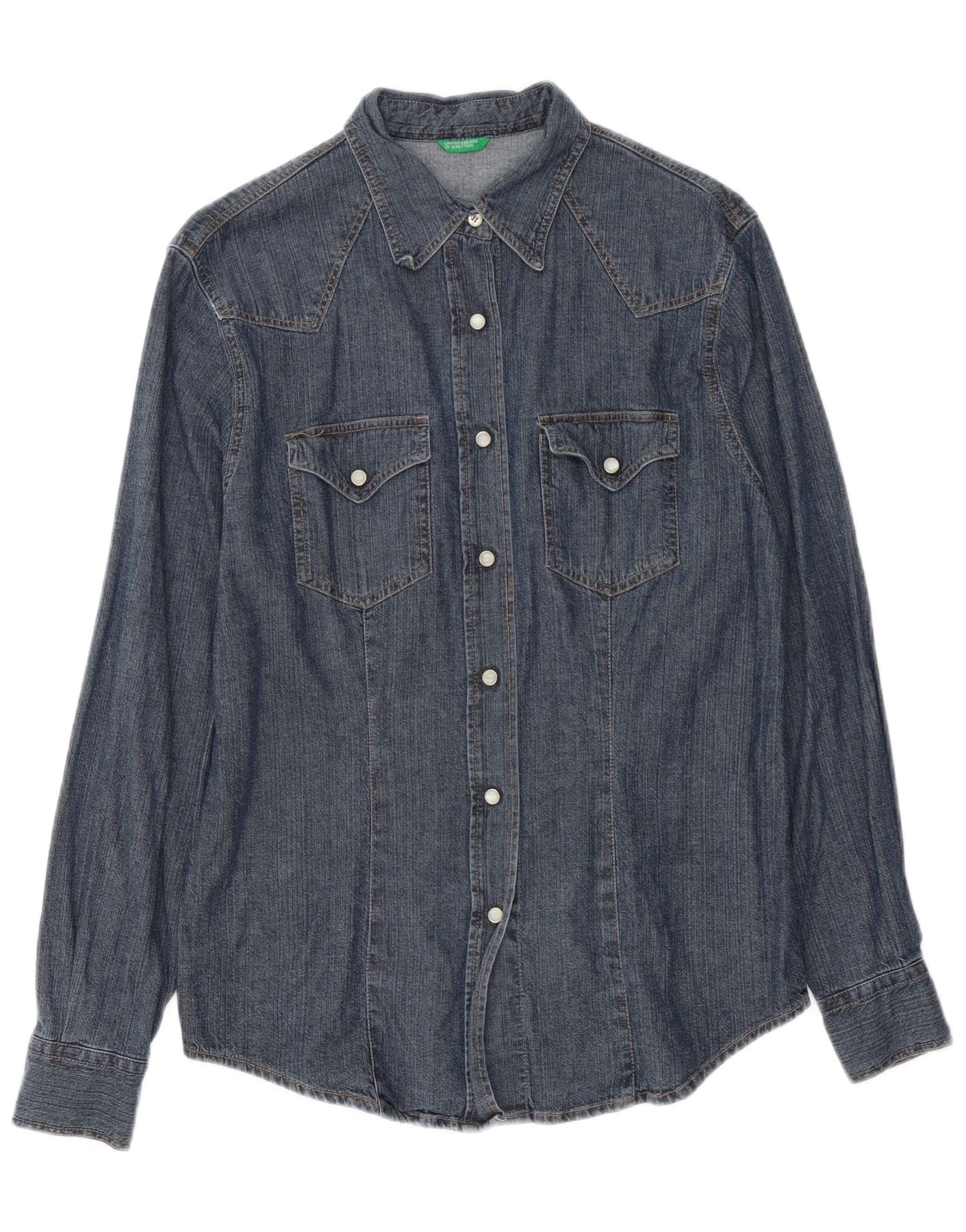 BENETTON Dame Denim Shirt UK 14 Medium Navy Blue Bomuld