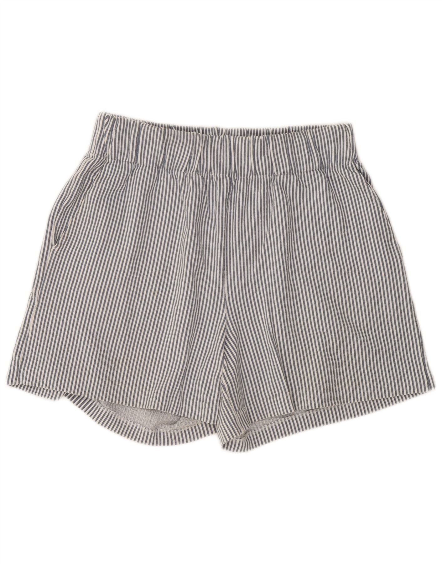 Benetton Dameshorts med høj talje Medium W30 Blå nålestribet bomuld