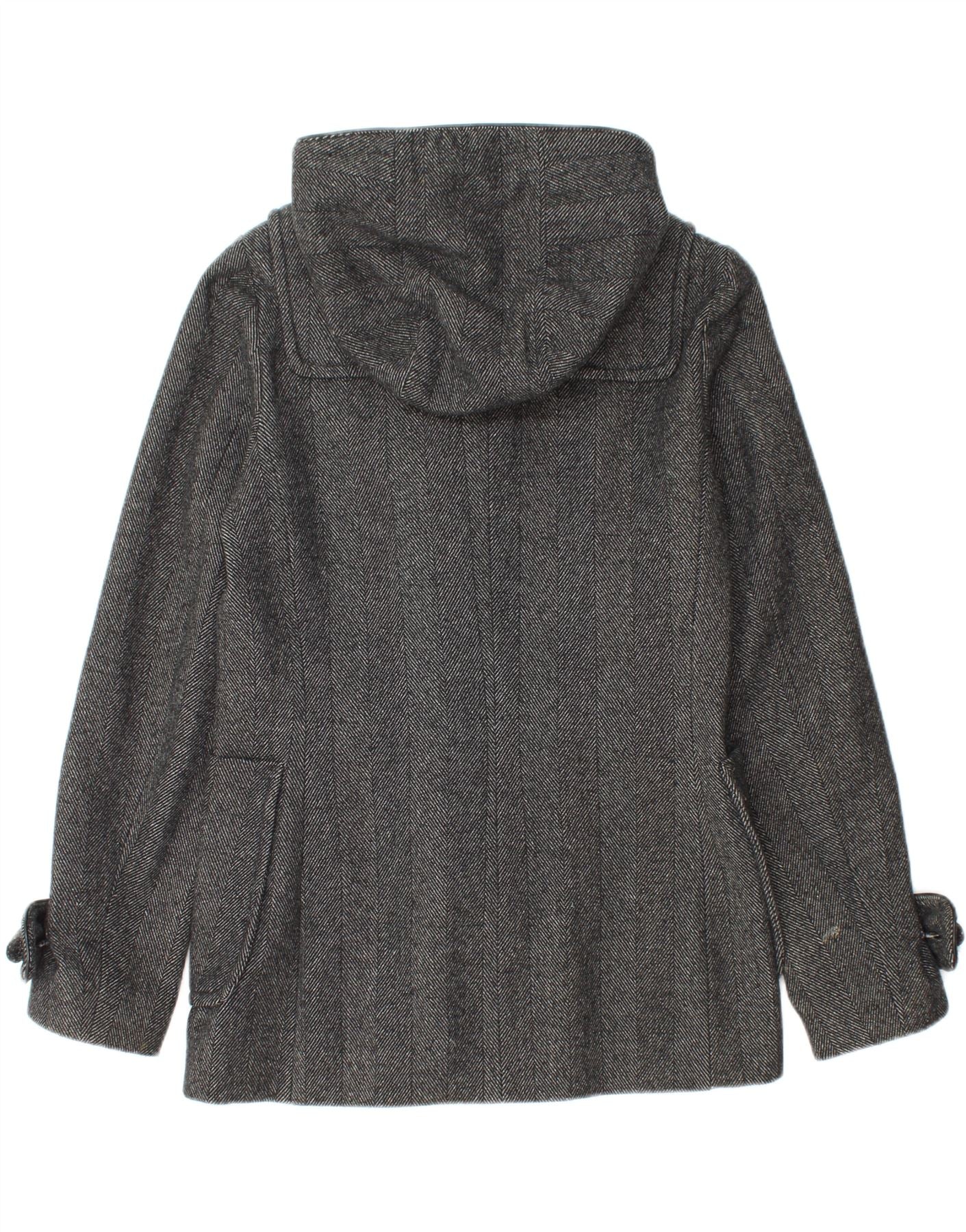 BENETTON Duffle Coat med hætte til kvinder IT 44 Medium sort sildebensuld