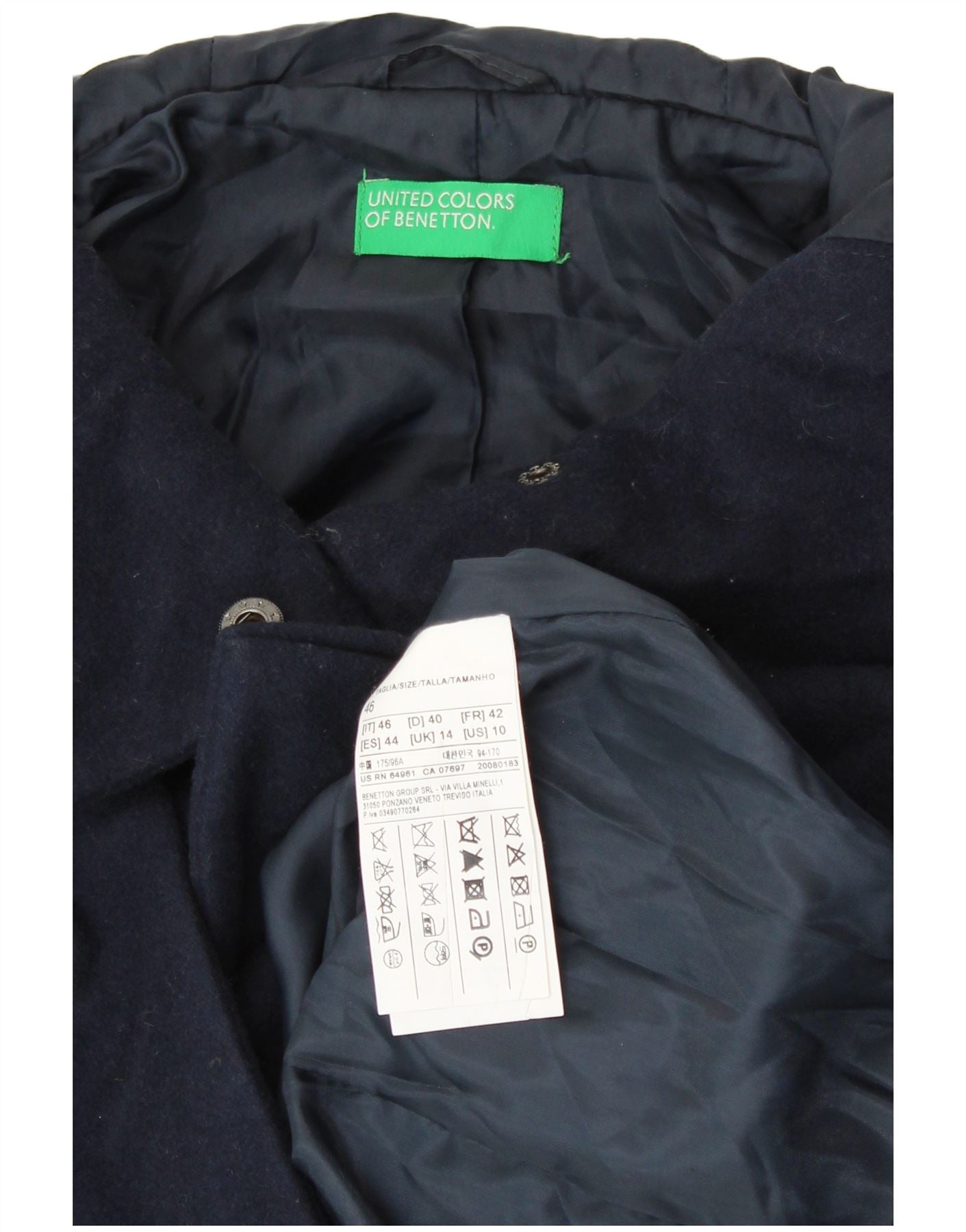 BENETTON Dame Hooded Duffel Coat UK 14 Large Navy Blue Wool