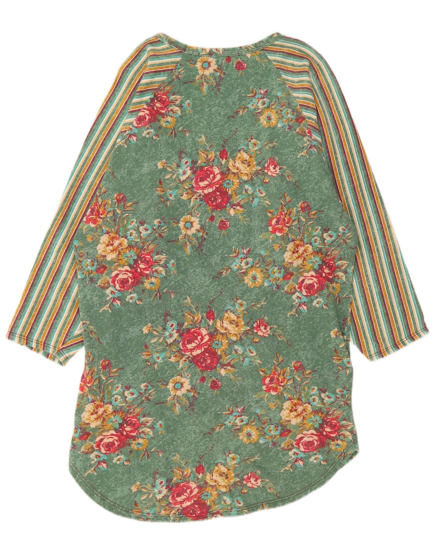 BENETTON Langærmet T-shirtkjole til kvinder UK 14 Medium Green Floral