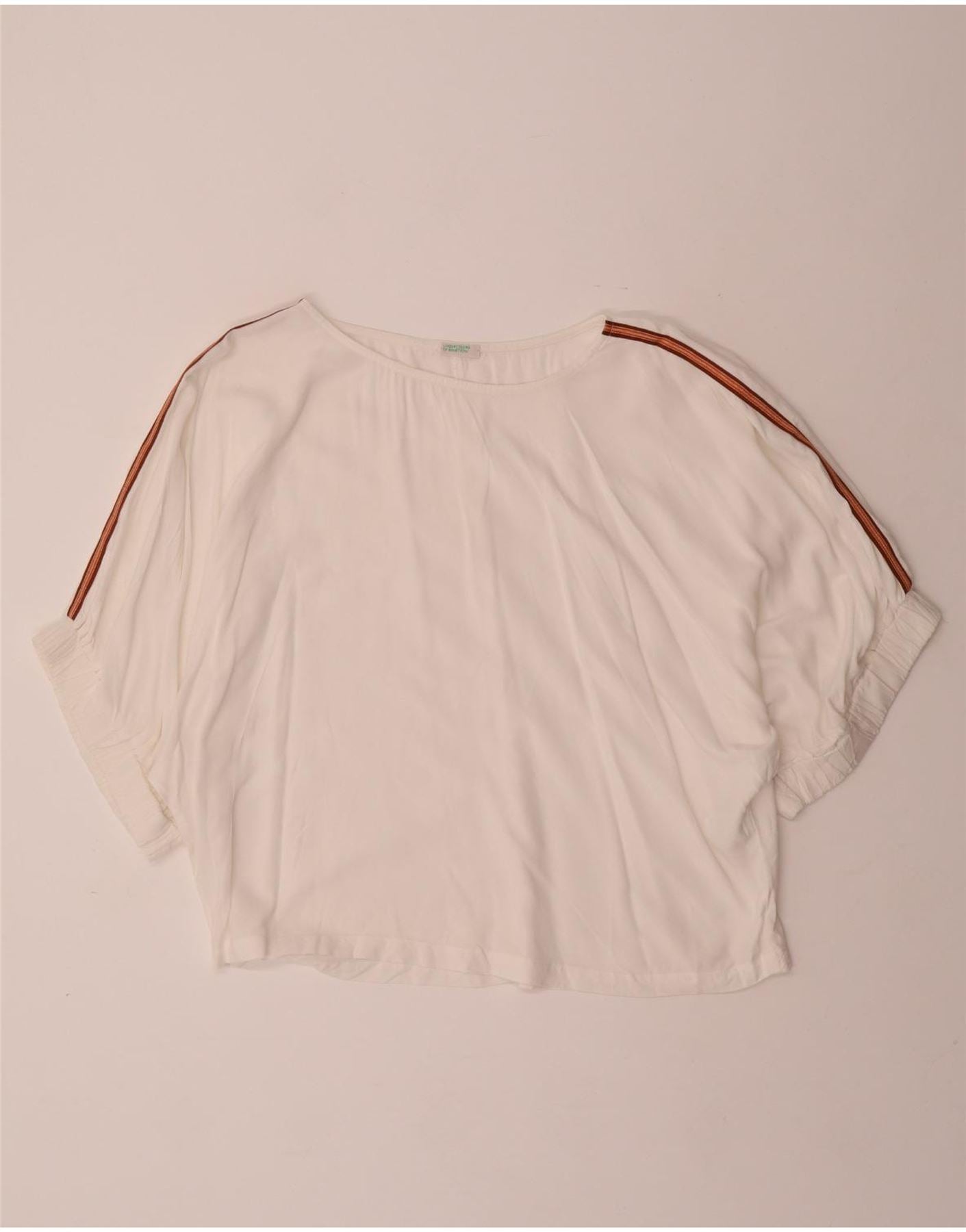 BENETTON Dame Oversized Bluse Top UK 10 Small Off White Viscose