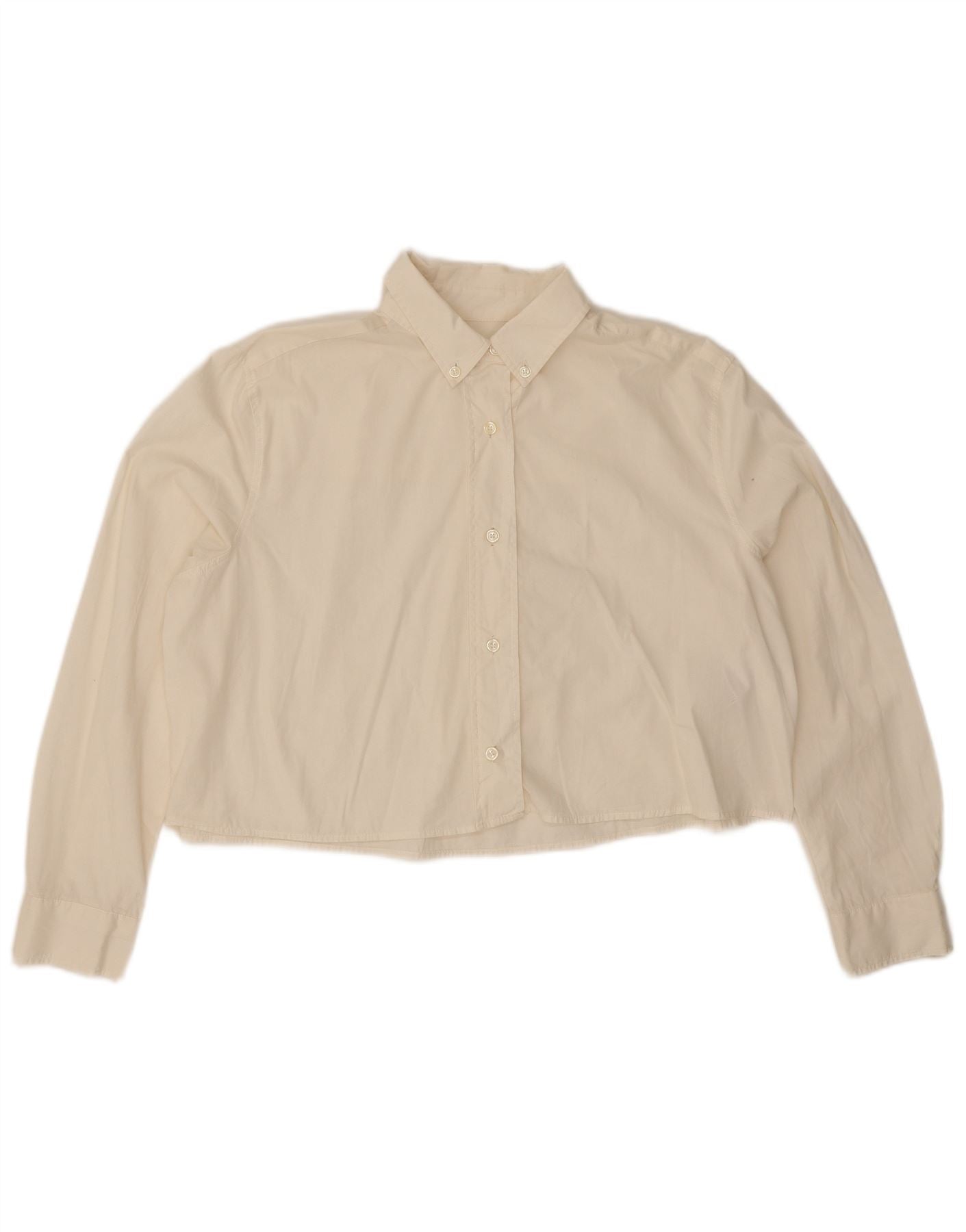 Benetton Womens Oversized Crop Shirt UK 14 Medium Beige Bomuld
