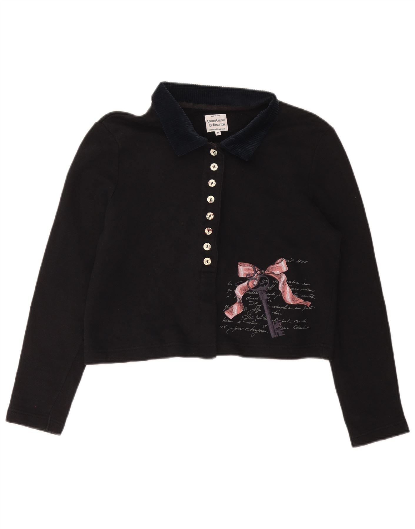 BENETTON Dame Oversized Grafisk Crop Polo Shirt UK 10 Lille Sort