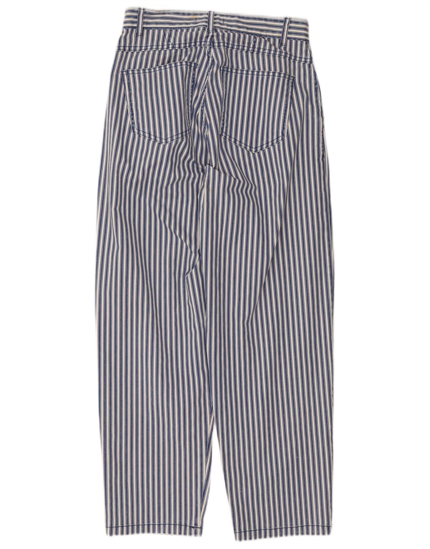 BENETTON Womens Pegged Cropped Trousers W26 L25 Blue Striped Cotton