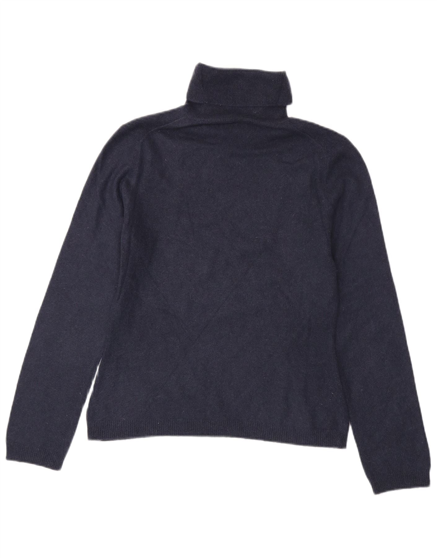 Benetton Dame Roll Neck Jumper Sweater UK 10 Small Navy Blue Cashmere