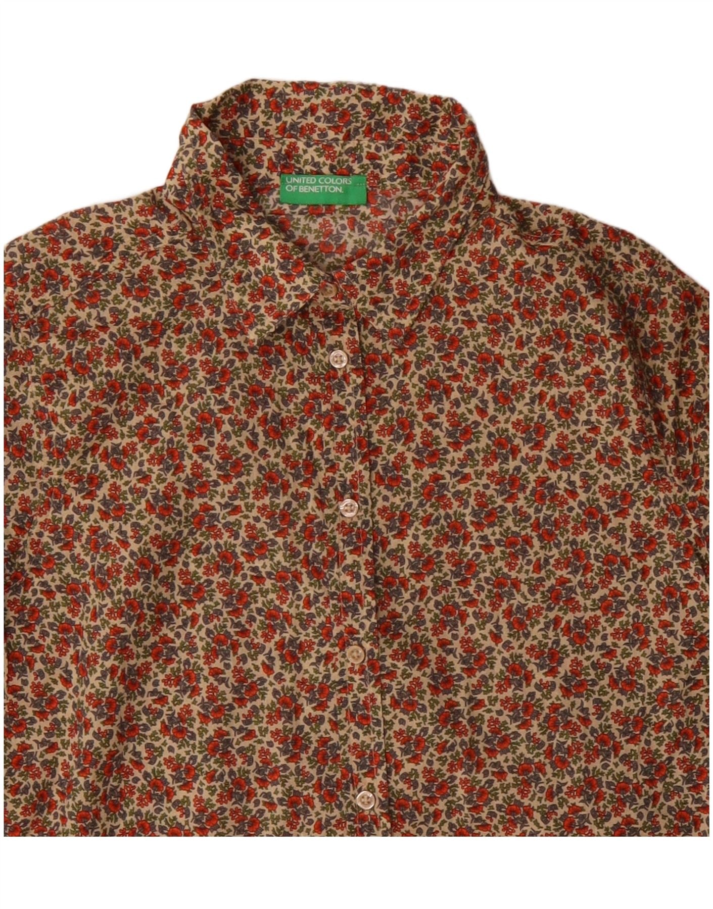 BENETTON Dameskjorte UK 10 Lille flerfarvet blomsterbomuld