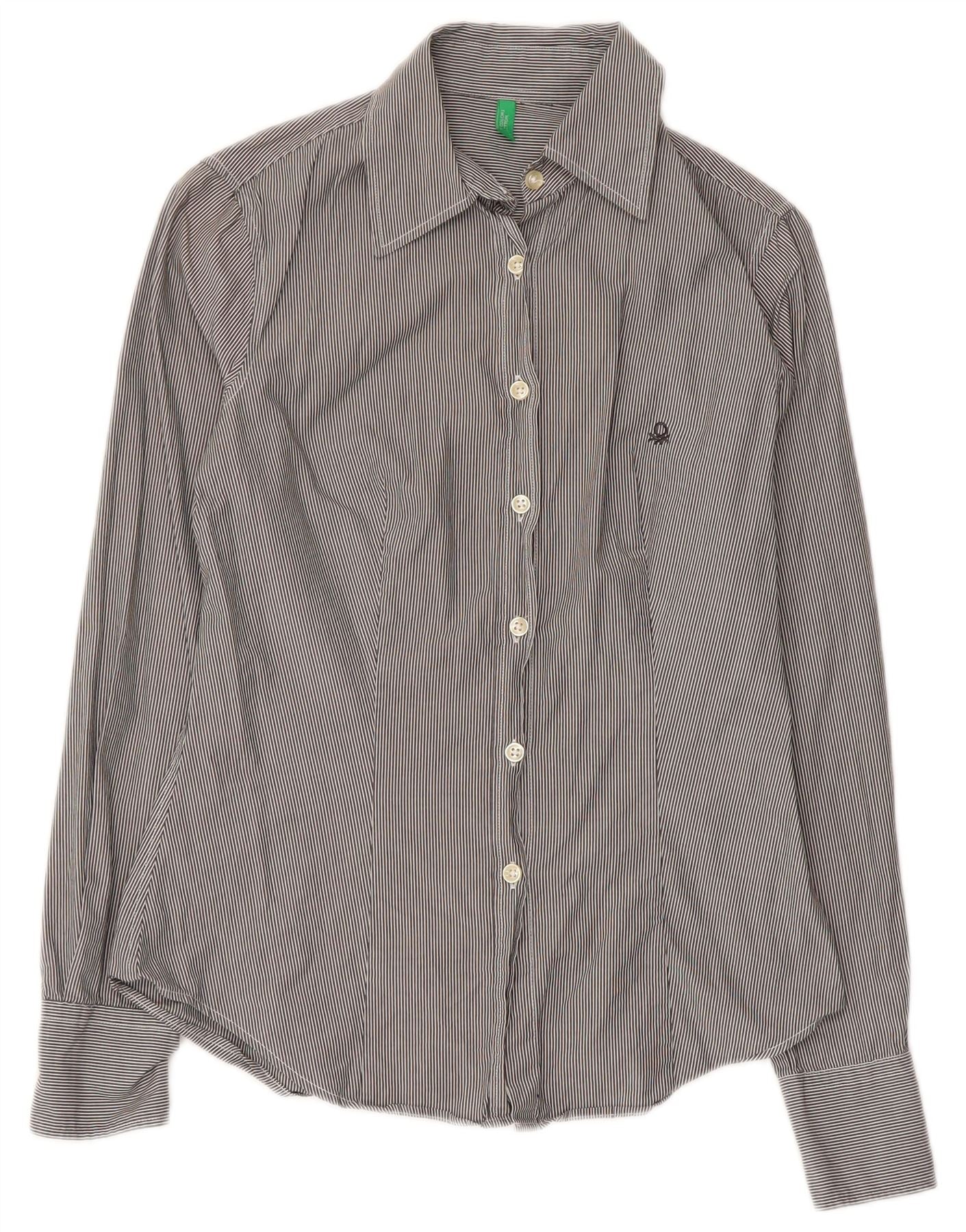 BENETTON Dameskjorte UK 8 Small Grey Pinstripe