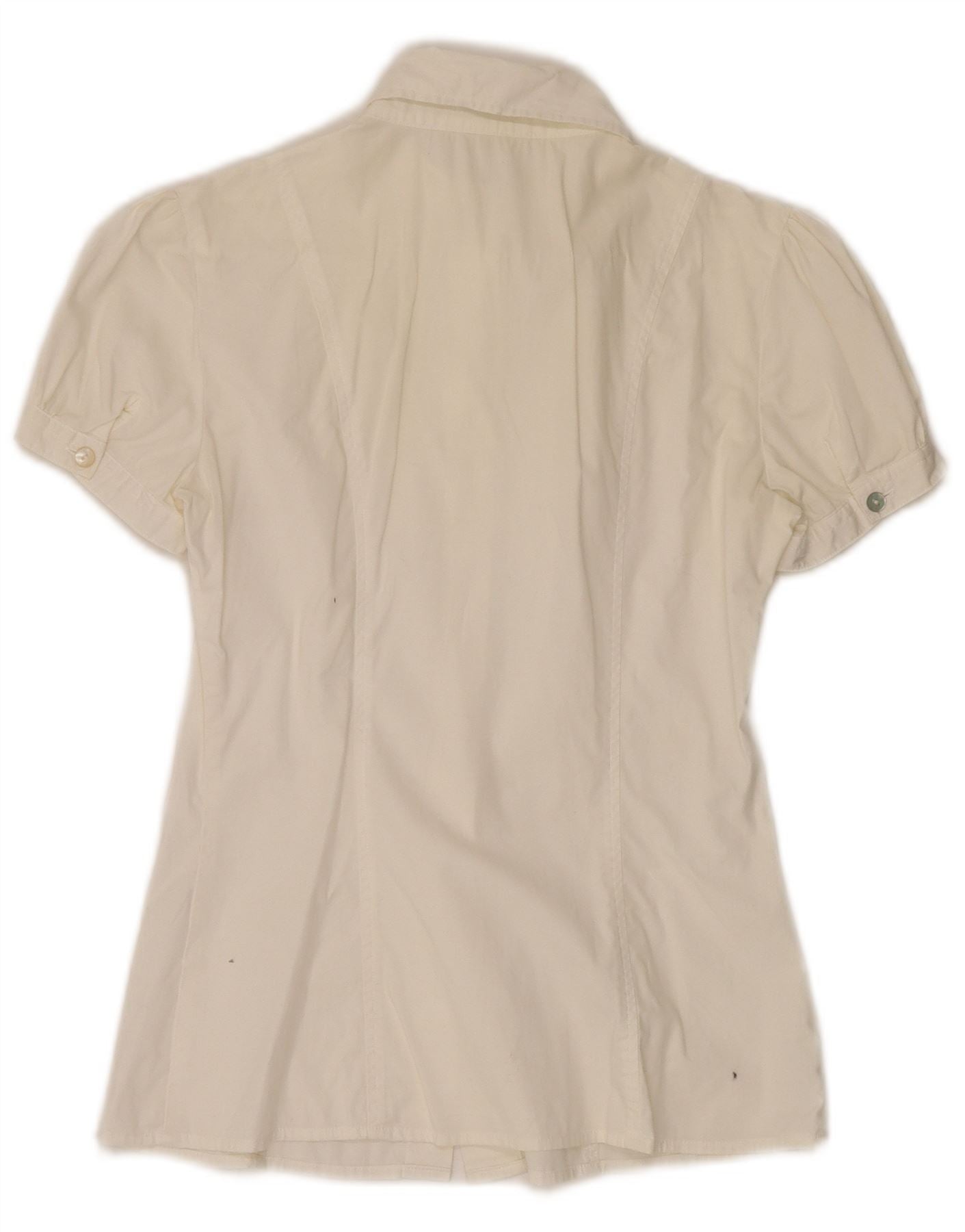 BENETTON Kortærmet skjortebluse til kvinder UK 8 Small Off White