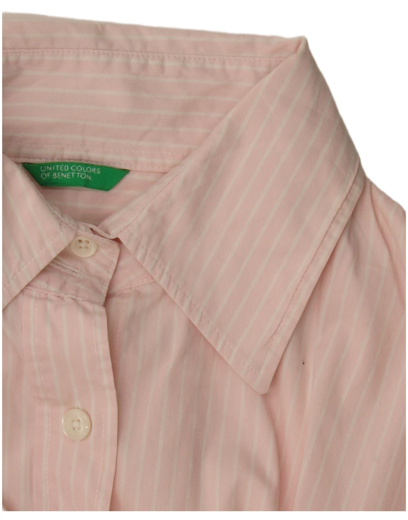 BENETTON kortærmet skjorte til kvinder UK 16 Large Pink Pinstripe