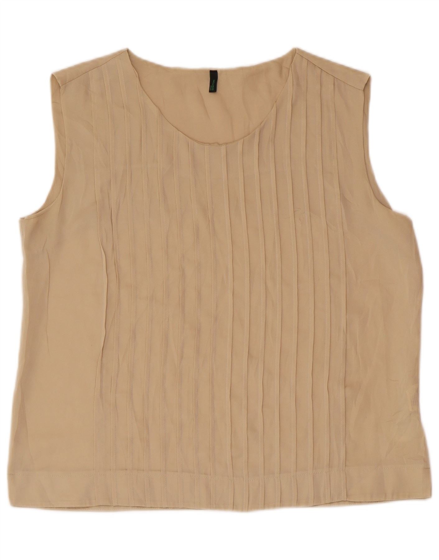 BENETTON Dame ærmeløs bluse Top UK 16 Stor Beige Polyester