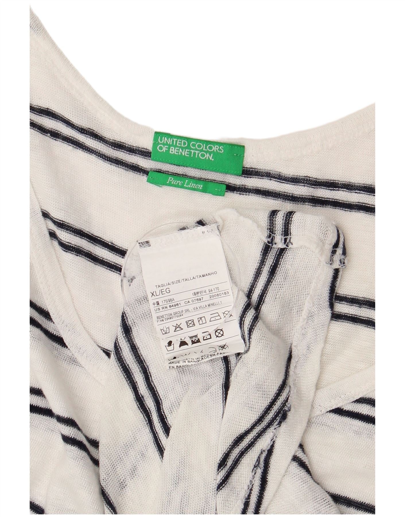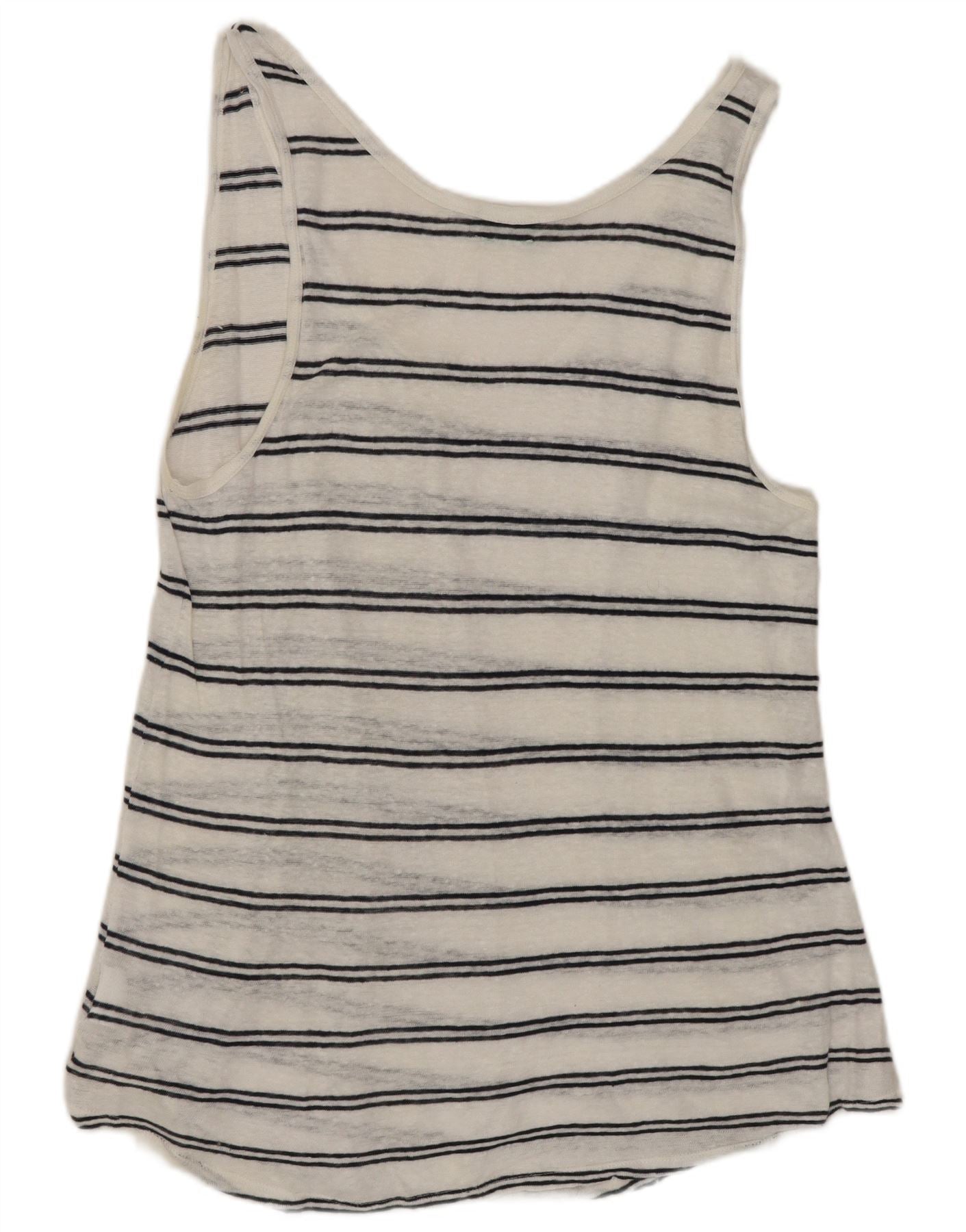Benetton Dame ærmeløs bluse Top UK 18 XL Hvid stribet hør