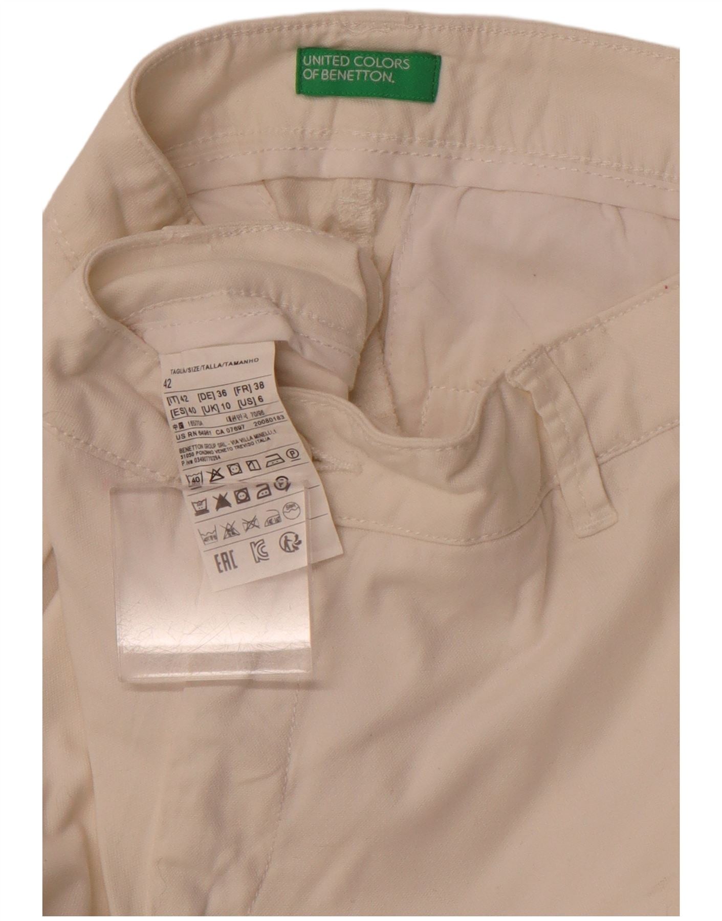 BENETTON Lige Chinobukser til kvinder UK 10 Small W28 L28 White Bomuld