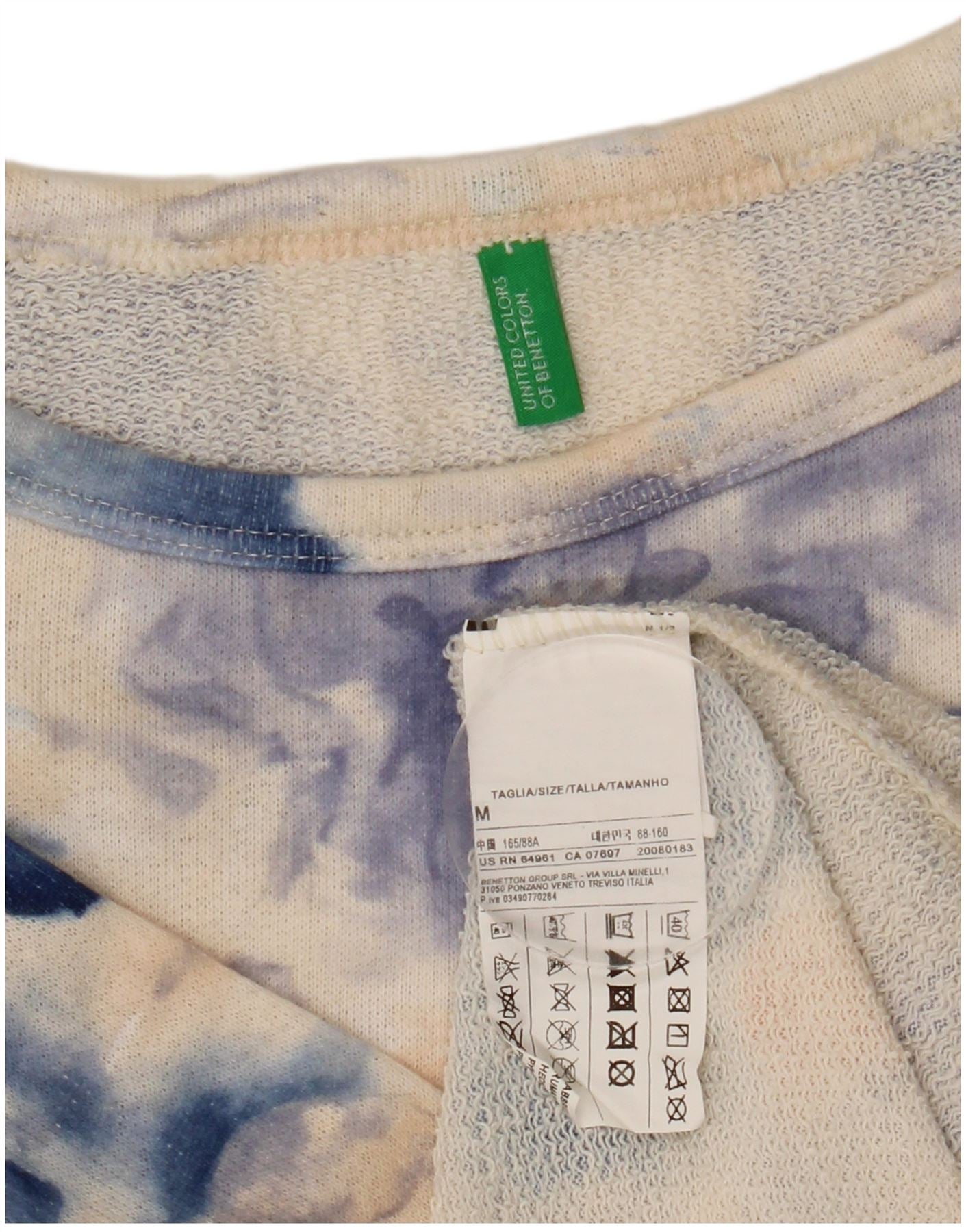 BENETTON Dame Top 3/4 ærmer UK 14 Medium Blue Floral Bomuld
