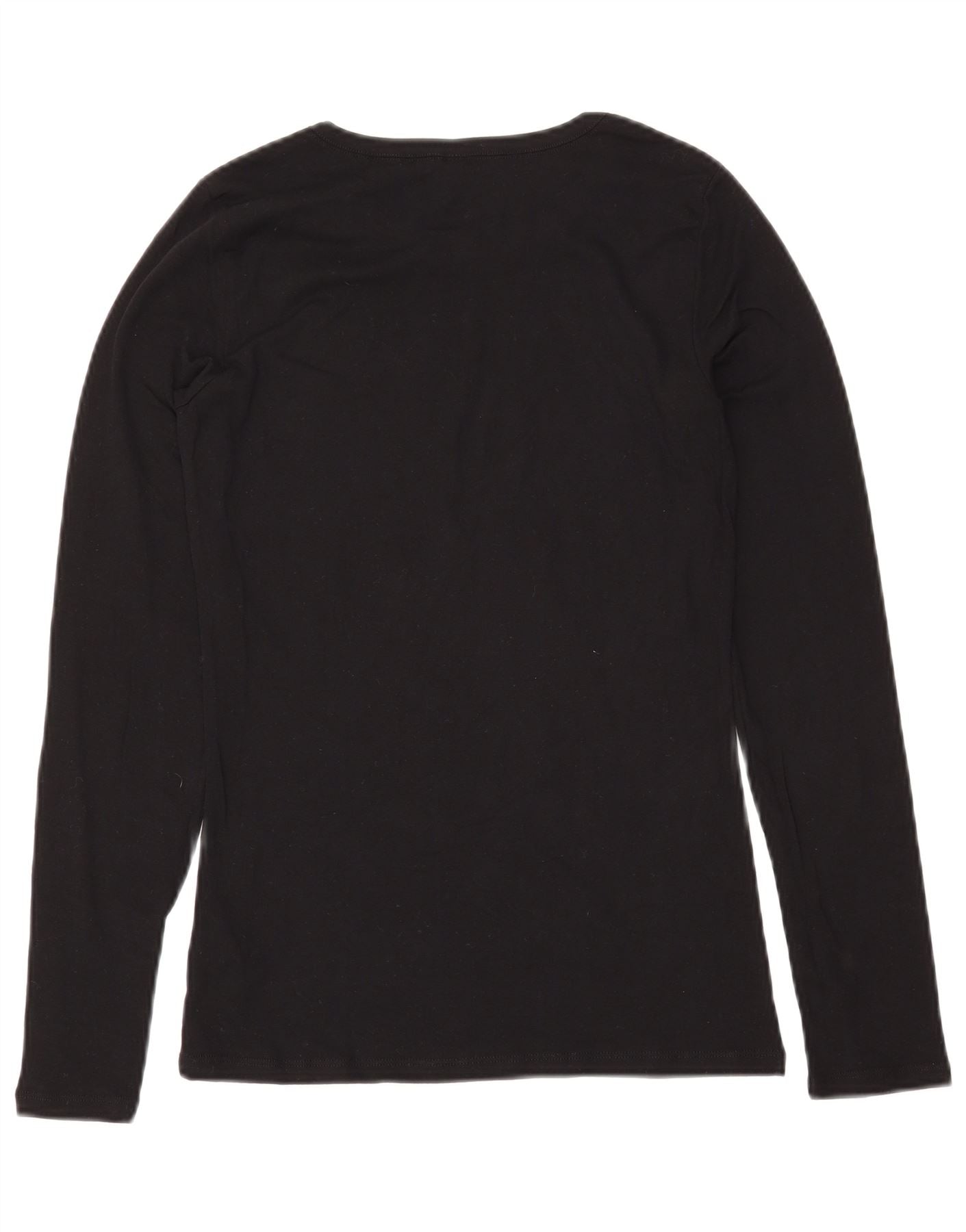 BENETTON Dame Top Langærmet UK 14 Stor Sort Bomuld