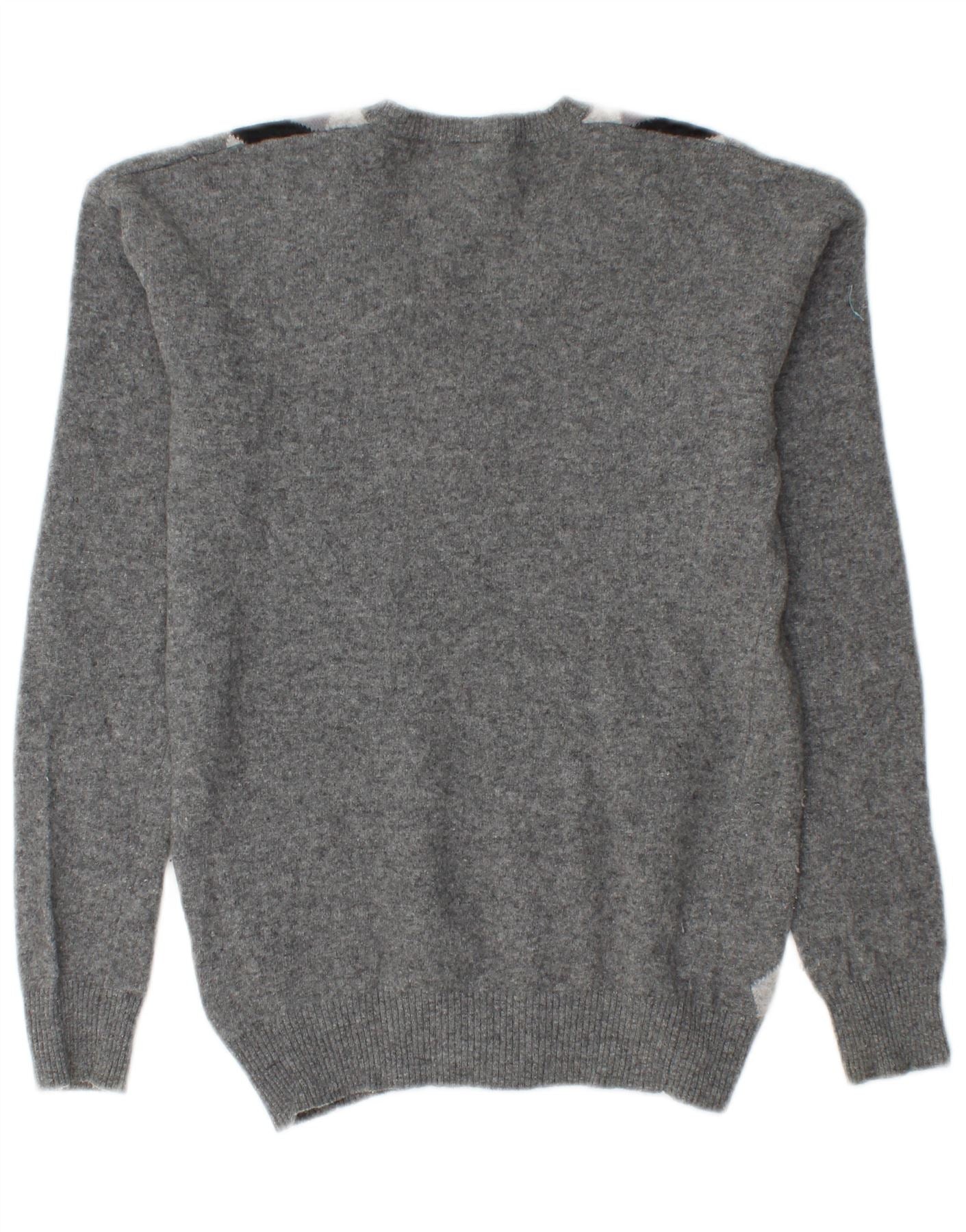 Home > Vintage Benetton tøj > Kvinders > BENETTON Dame V-hals sweater UK 10 Small Grey Argyle/Diamond Wool
