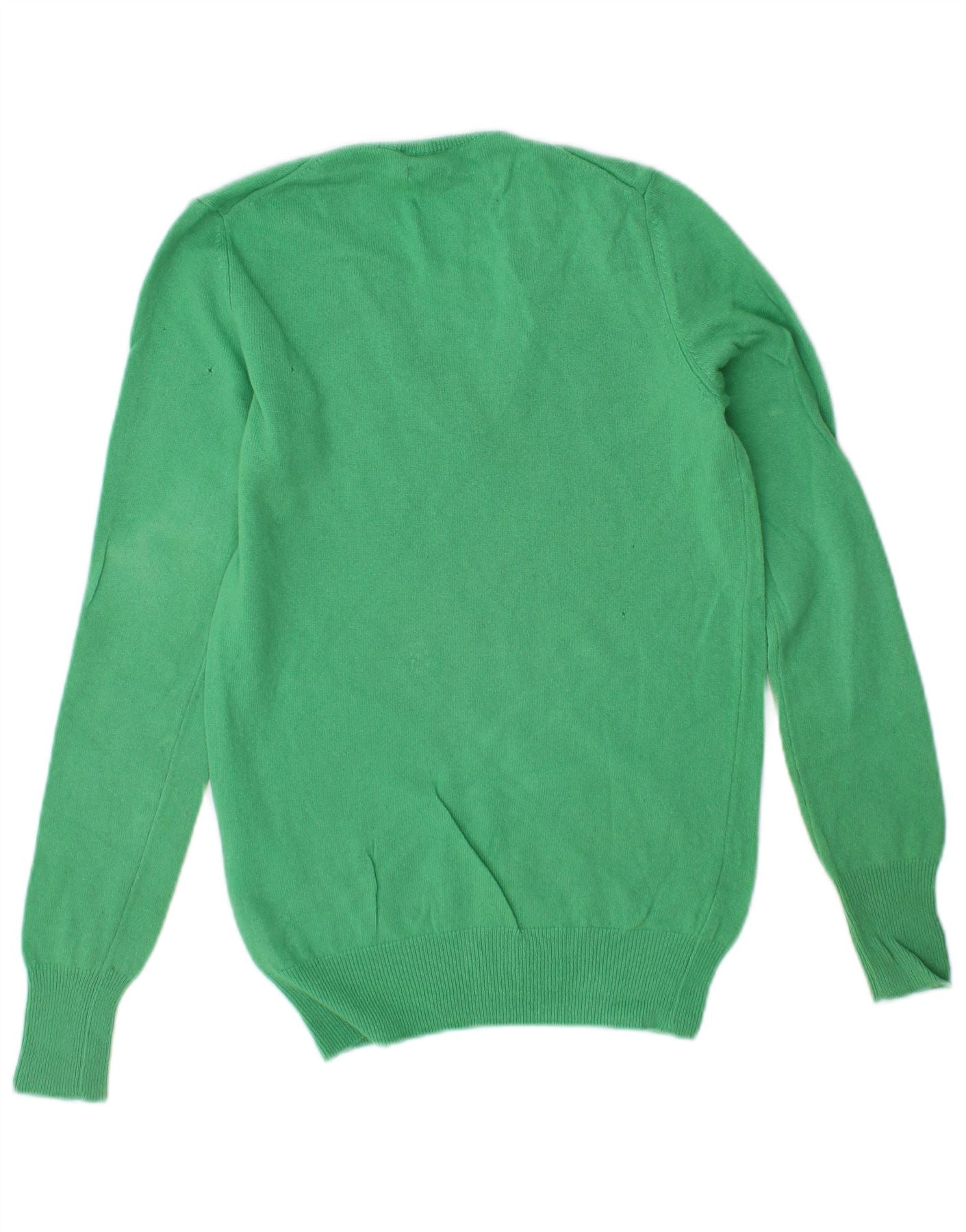 BENETTON Dame V-hals sweater UK 6 XS Grøn Virgin Wool