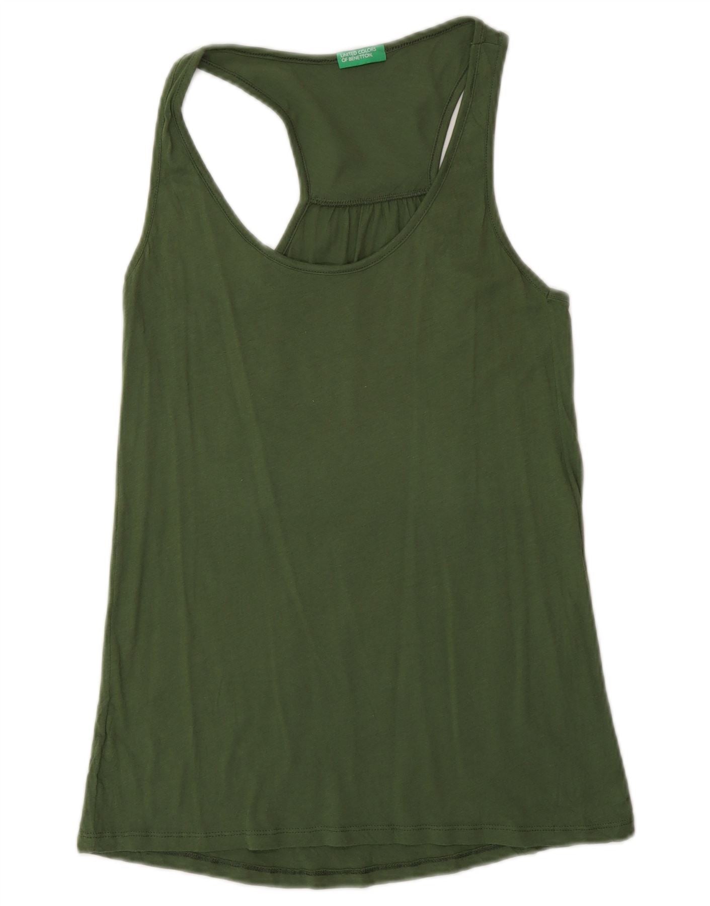 - AI beskrivelse: Denne United Colors Of Benetton damevesttop er lavet af blødt grønt jerseystof. Den har en klassisk rund hals og et ærmeløst design. Den almindelige pasform giver behageligt slid. Racerback-stilen giver nem bevægelse. Dens enkle design sikrer alsidig styling til hverdagens outfits.