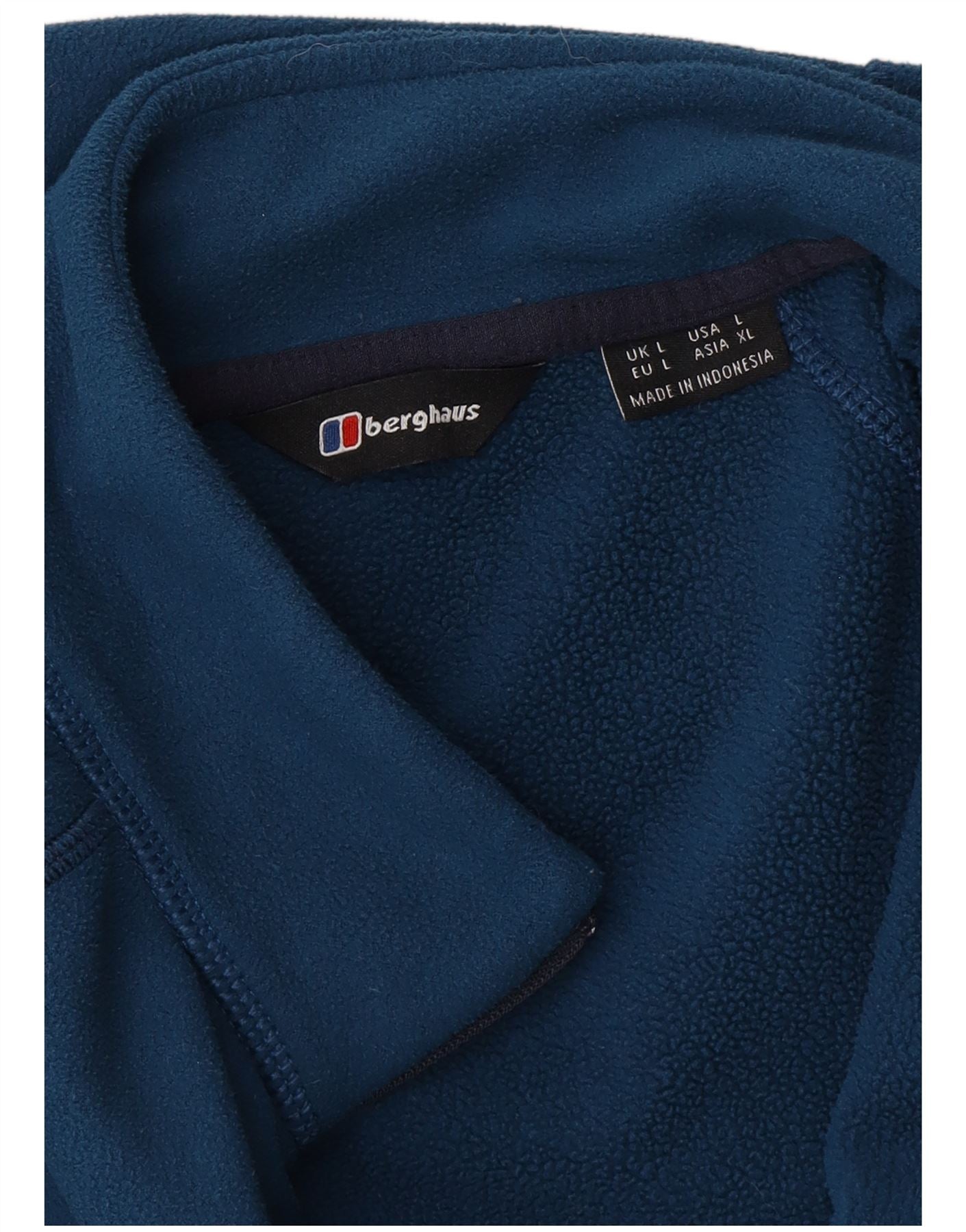 - AI Description: This Berghaus mens sweatshirt jumper is crafted from soft blue fleece, offering lightweight thermal comfort. It features a mock neck and a practical 1/4 zip closure. Long sleeves provide ample coverage. The regular fit ensures comfortable wear. A distinctive spell-out logo adds a classic branded touch.