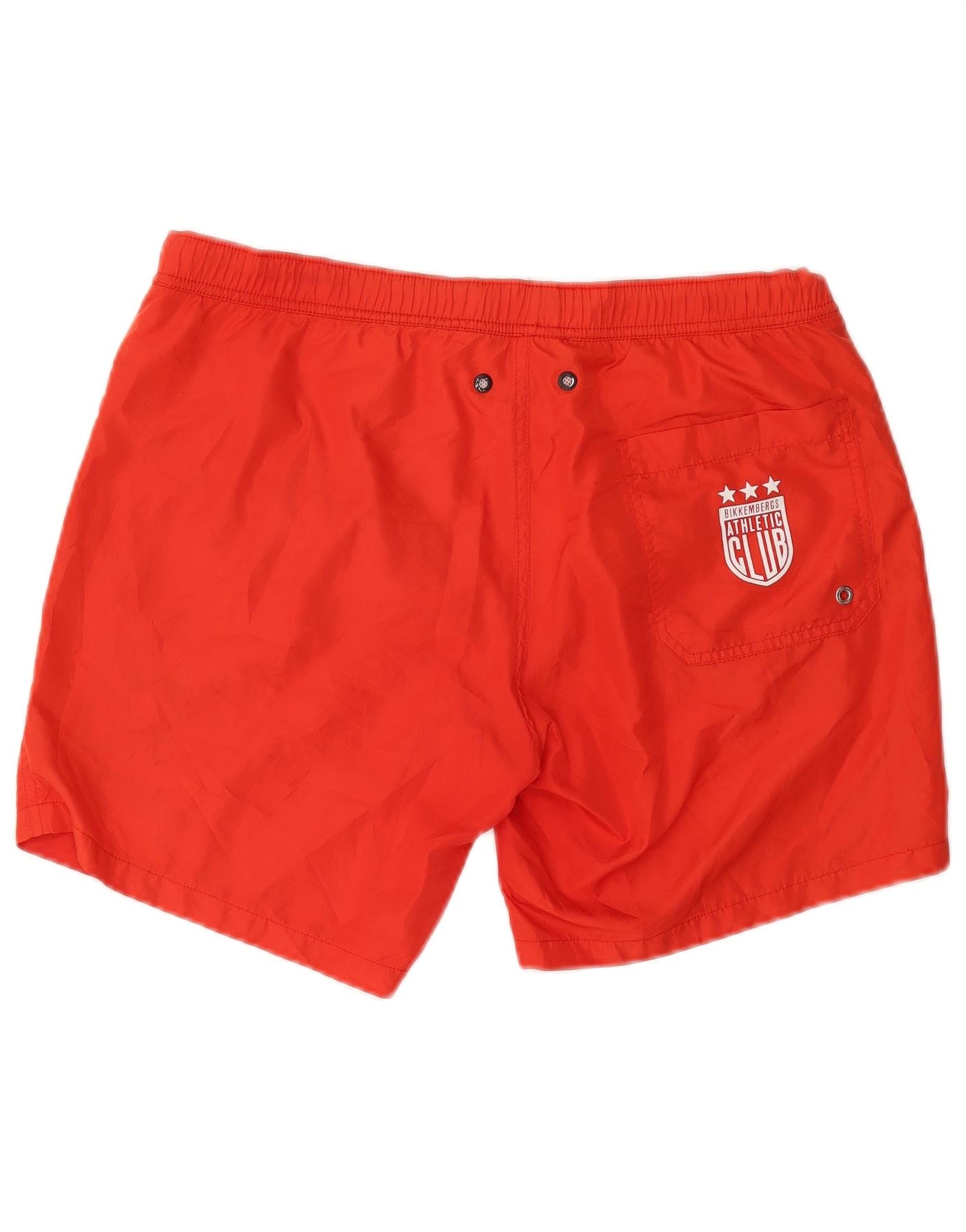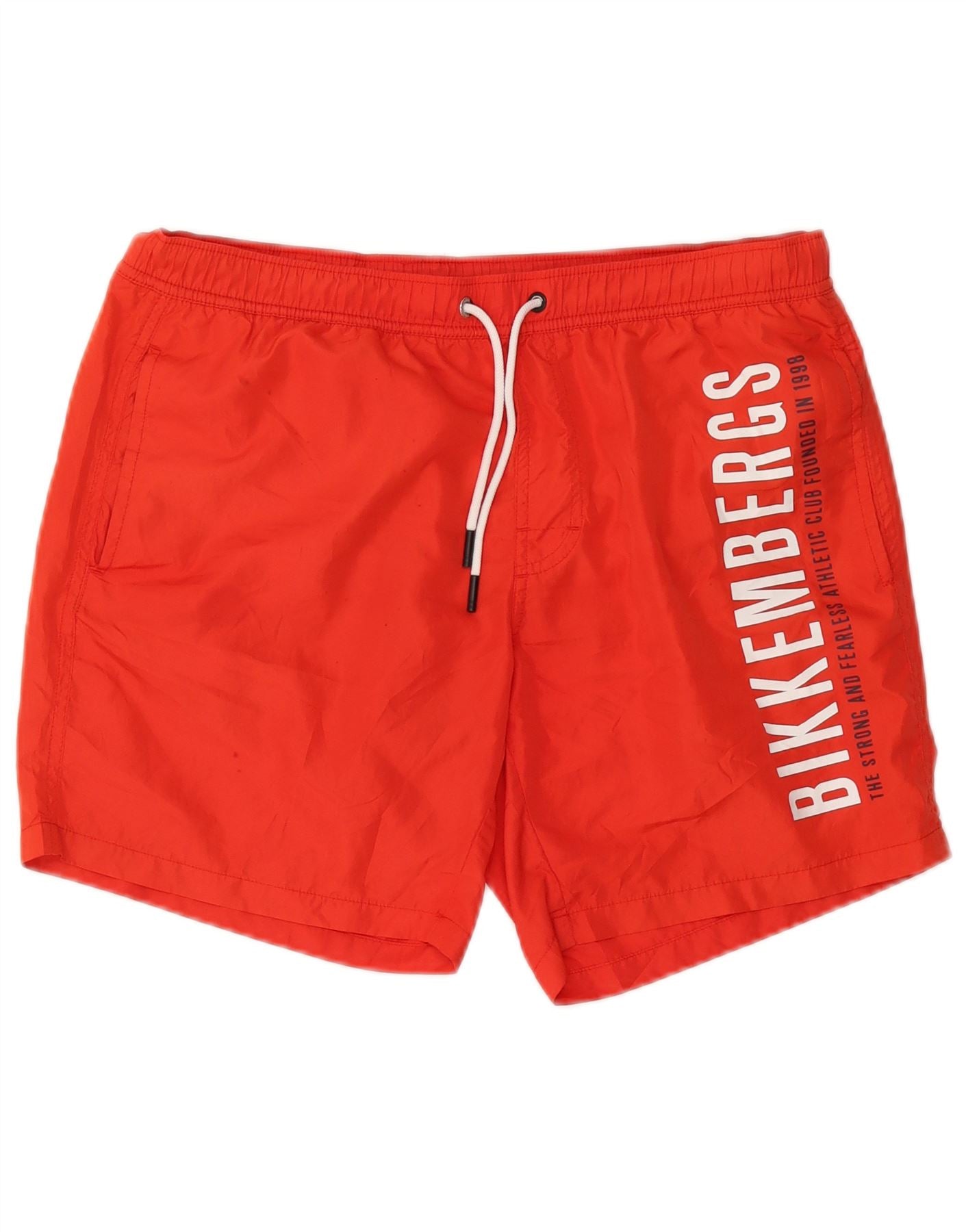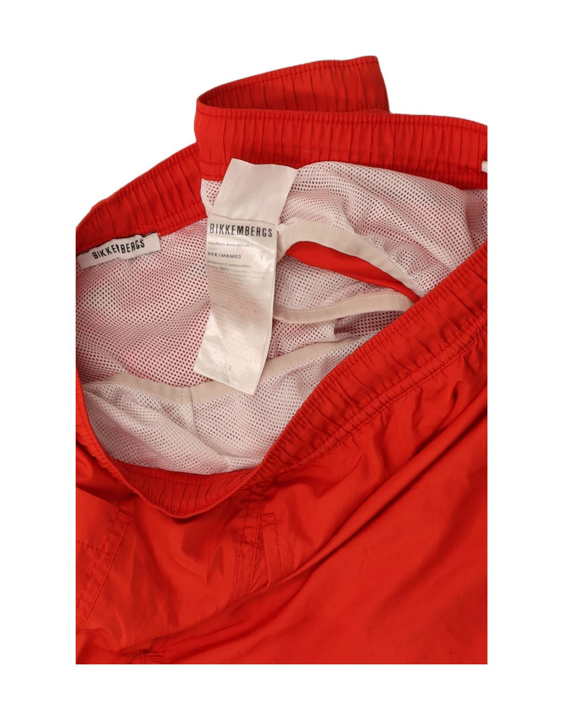 BIKKEMBERGS Mens Graphic Swimming Shorts Large Red Polyester