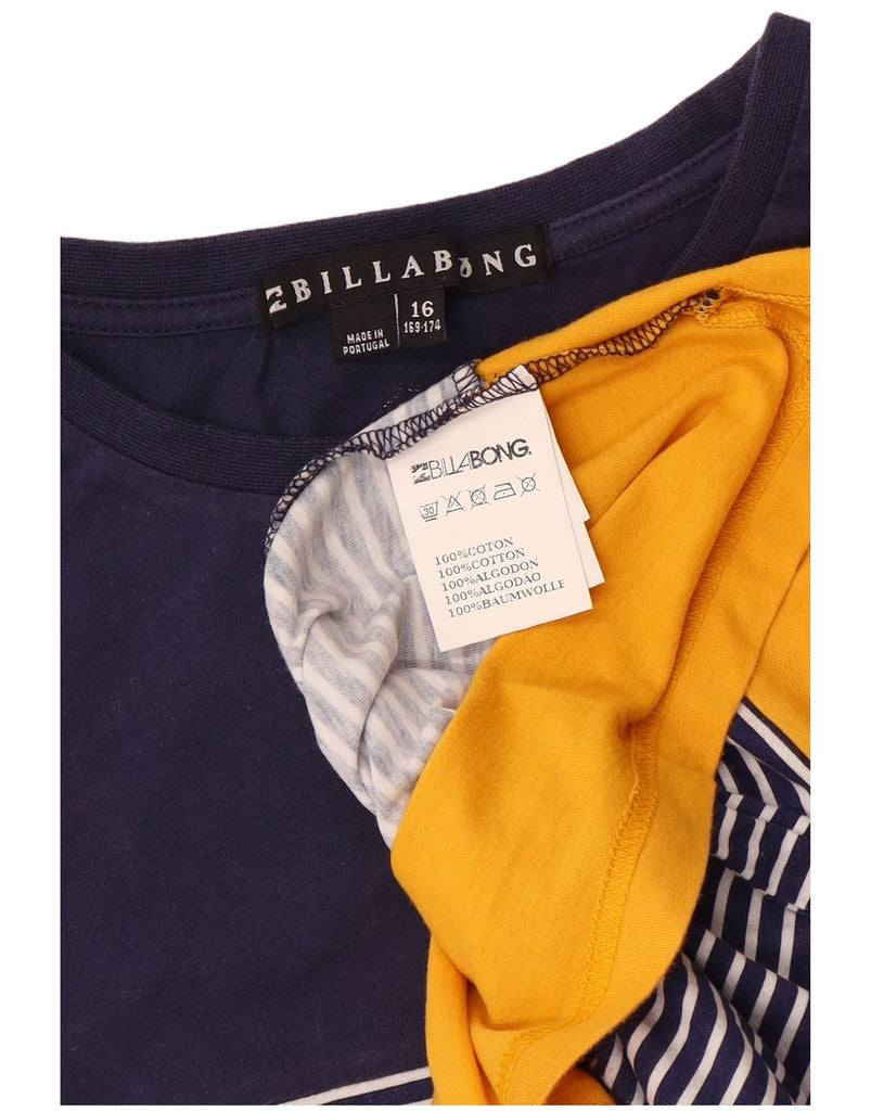 BILLABONG Boys T-Shirt Top 15-16 Years Navy Blue Striped Cotton