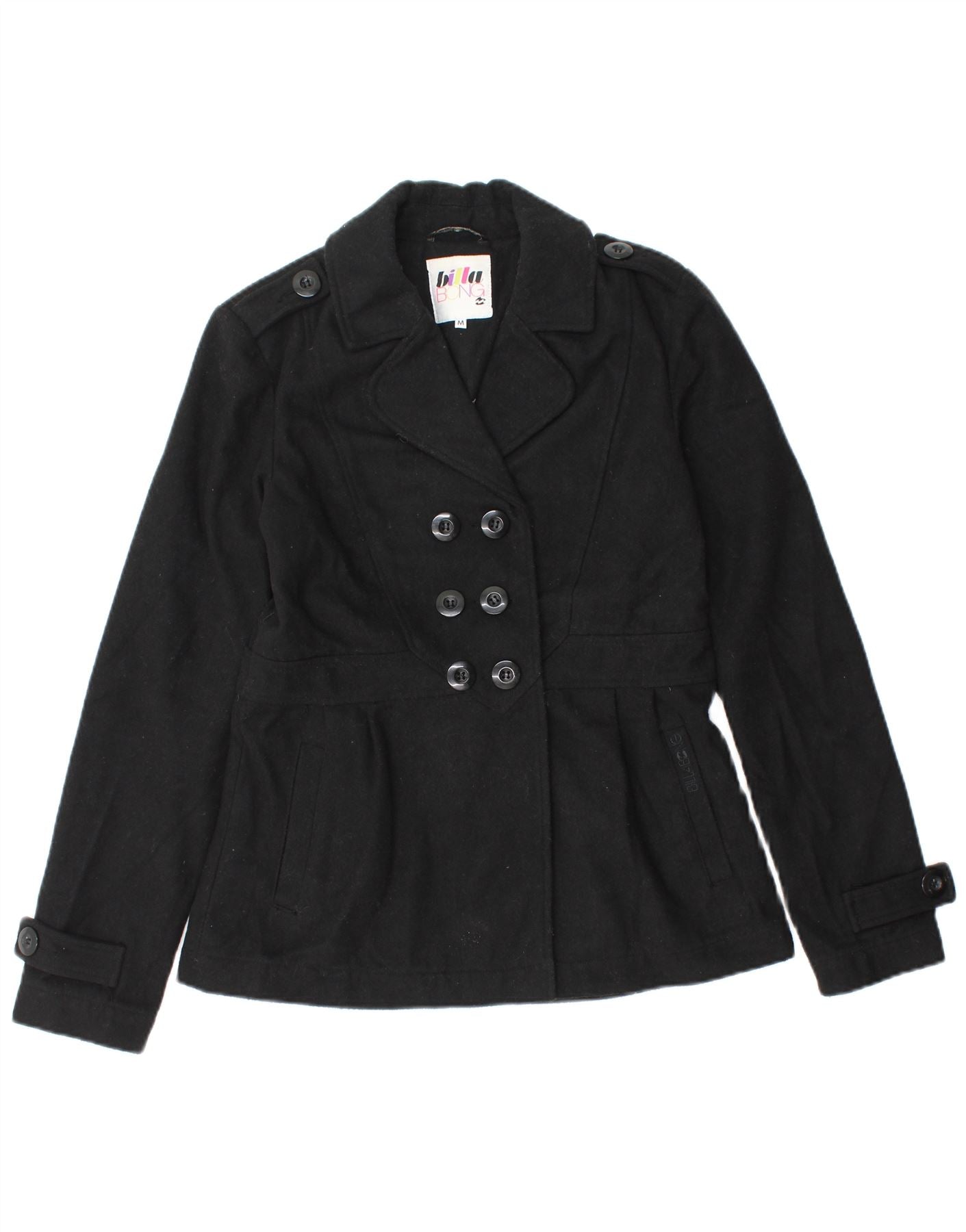 BILLABONG Womens Pea Coat UK 12 Medium Black Polyester