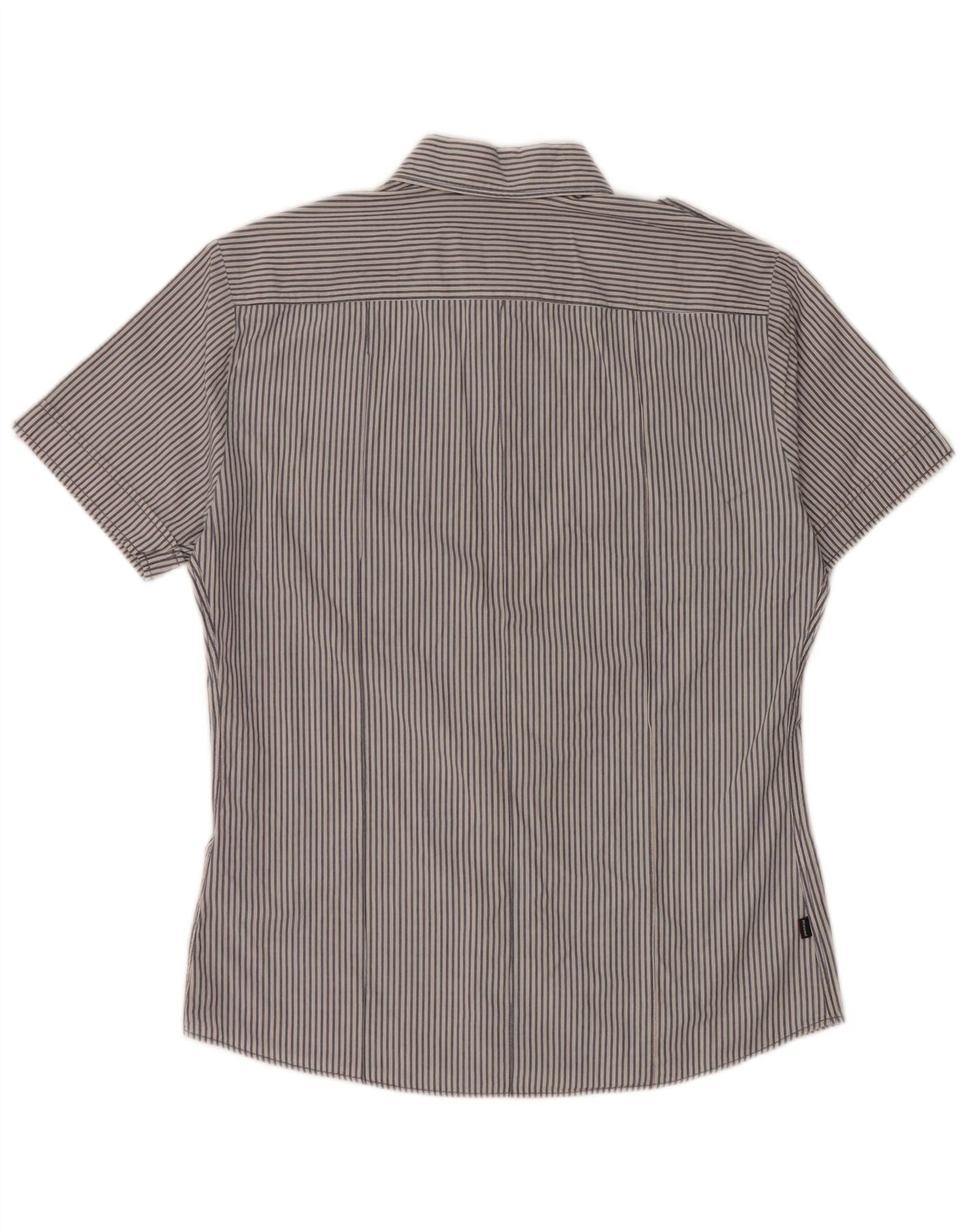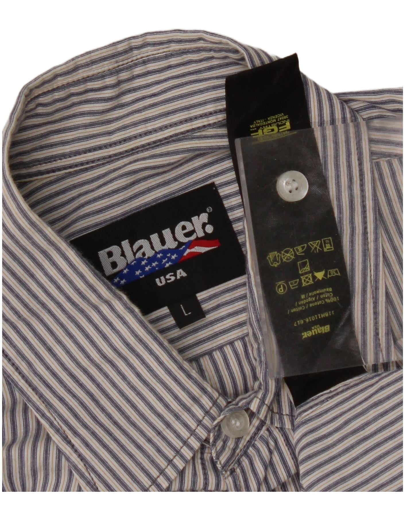 BLAUER Herre Militær Kortærmet Skjorte Stor Blå Nålestribet Bomuld