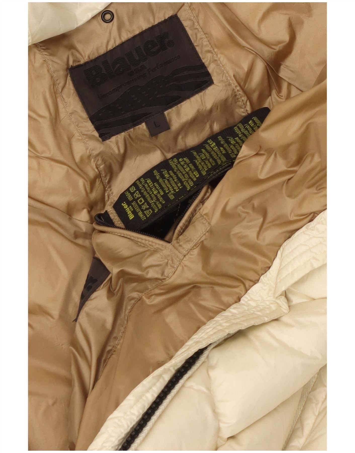 Blauer Polstret frakke med hætte til kvinder UK 16 Stor hvid polyamid