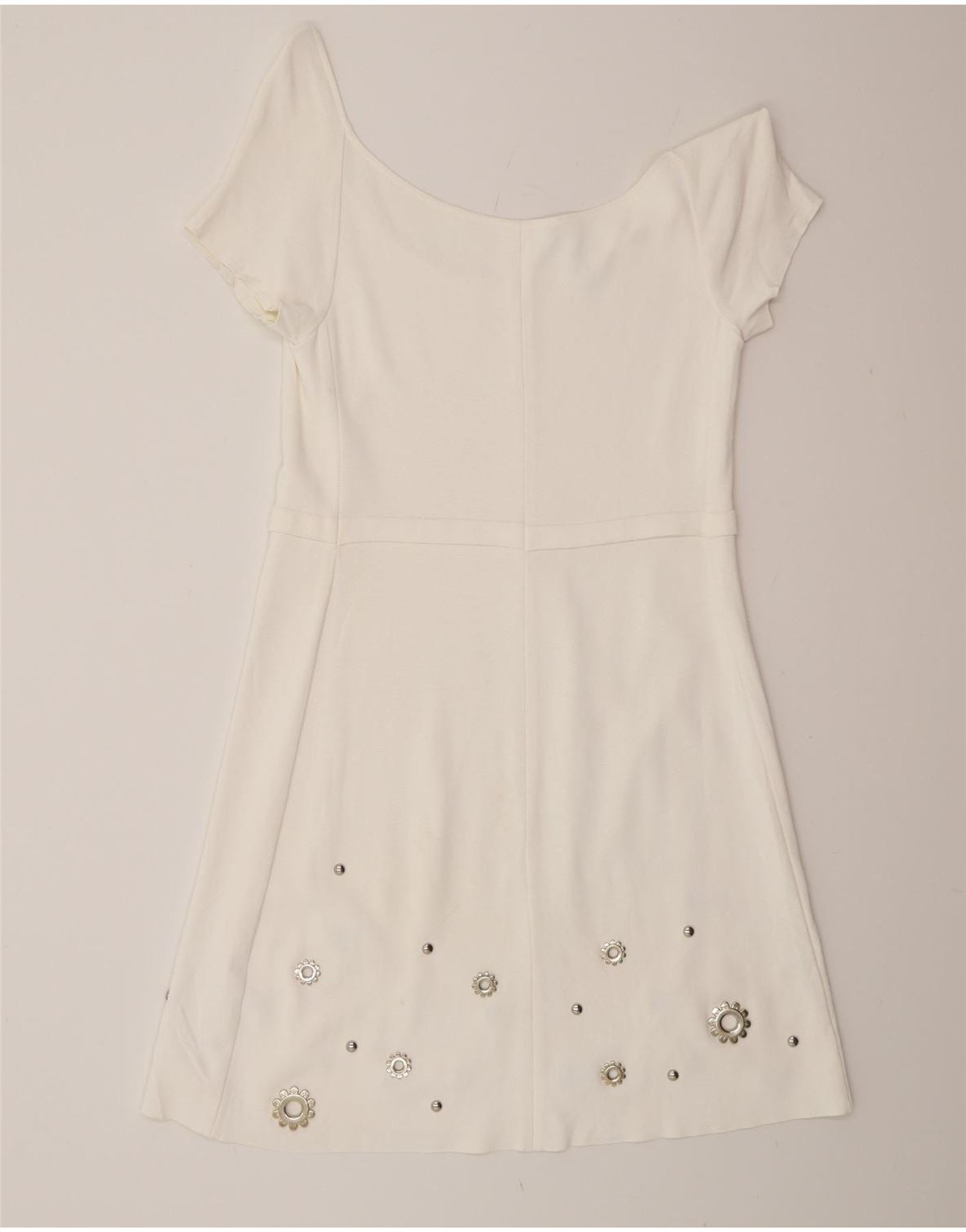 Blumarine Kvinder Off Shoulder Kjole UK 10 Small White Viscose