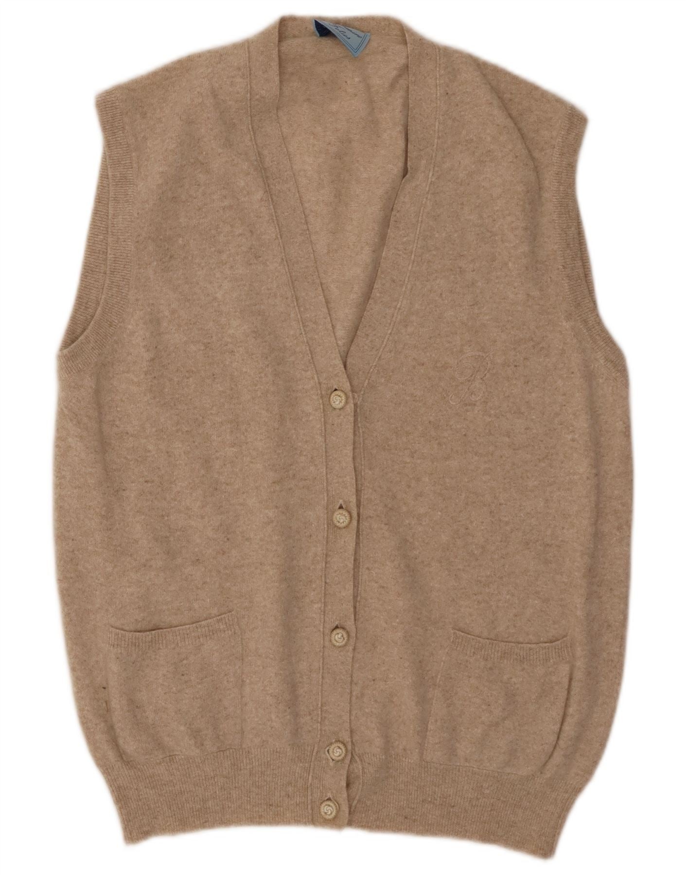 BLUMARINE Dame ærmeløs cardigan sweater IT 46 Stor Beige Uld