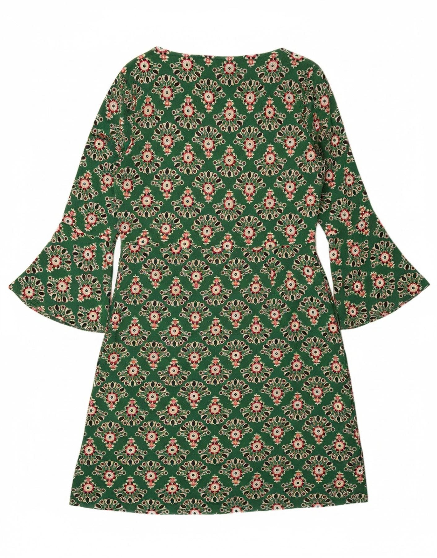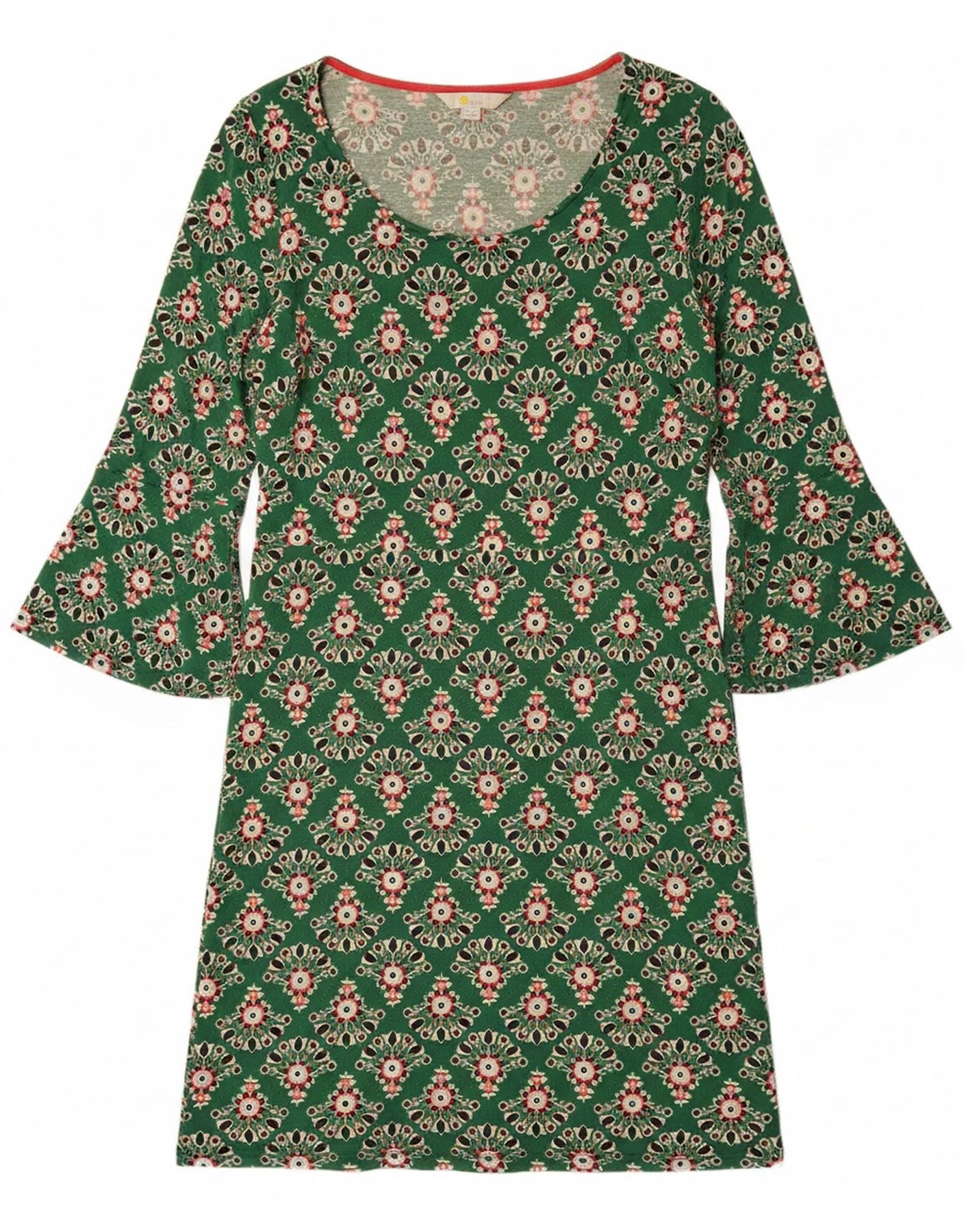BODEN Dame 3/4-ærmet A-line kjole UK 14 Large Green Floral Viscose