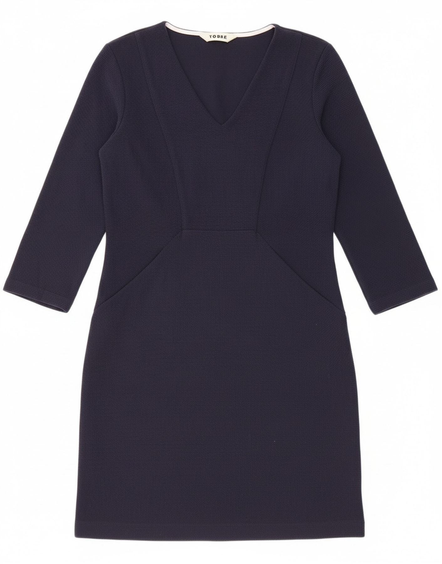 Boden Dame 3/4 Ærmet Skede Kjole UK 10 Small Navy Blue Cotton