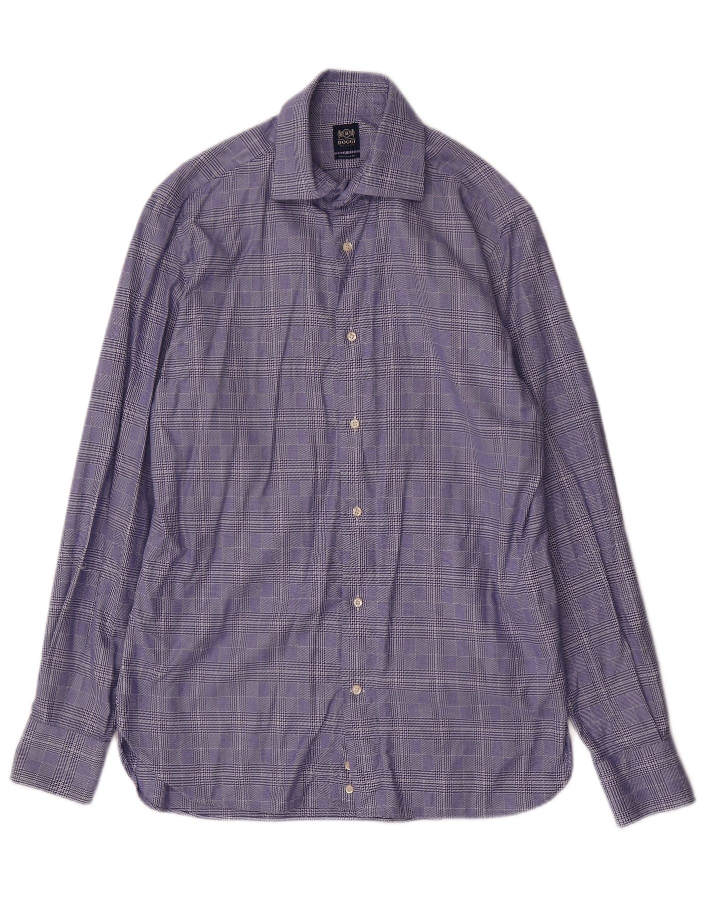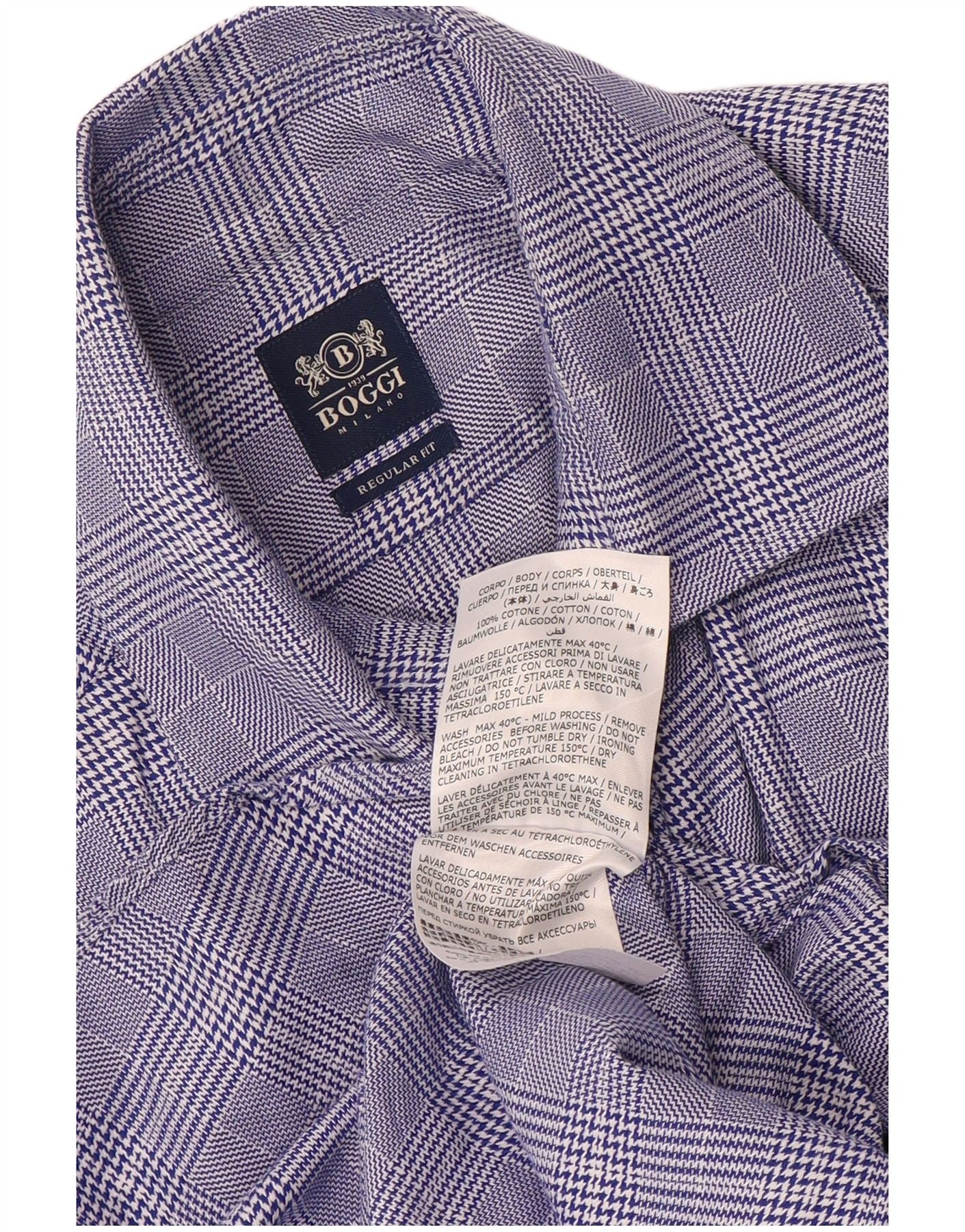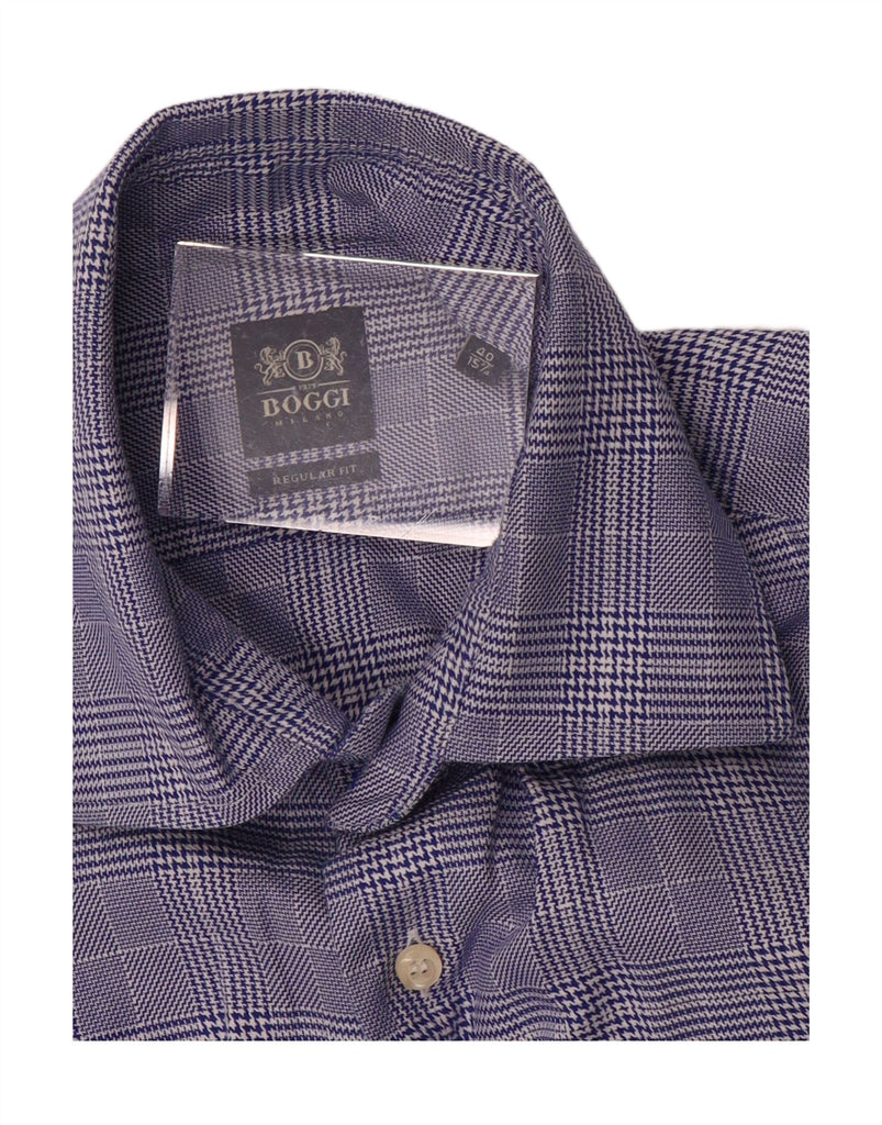 BOGGI Herre Regular Fit skjorte str. 40 15 1/2 Medium Blue Ternet Bomuld