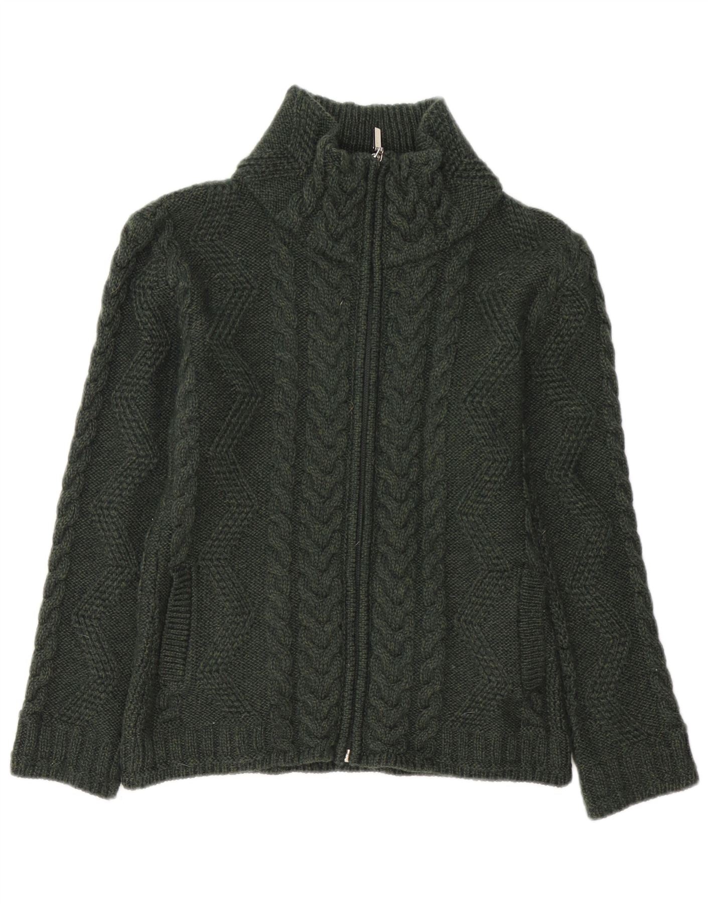 BOSTON IRISH Dame Cardigan Sweater UK 10 Lille Grøn Merinould