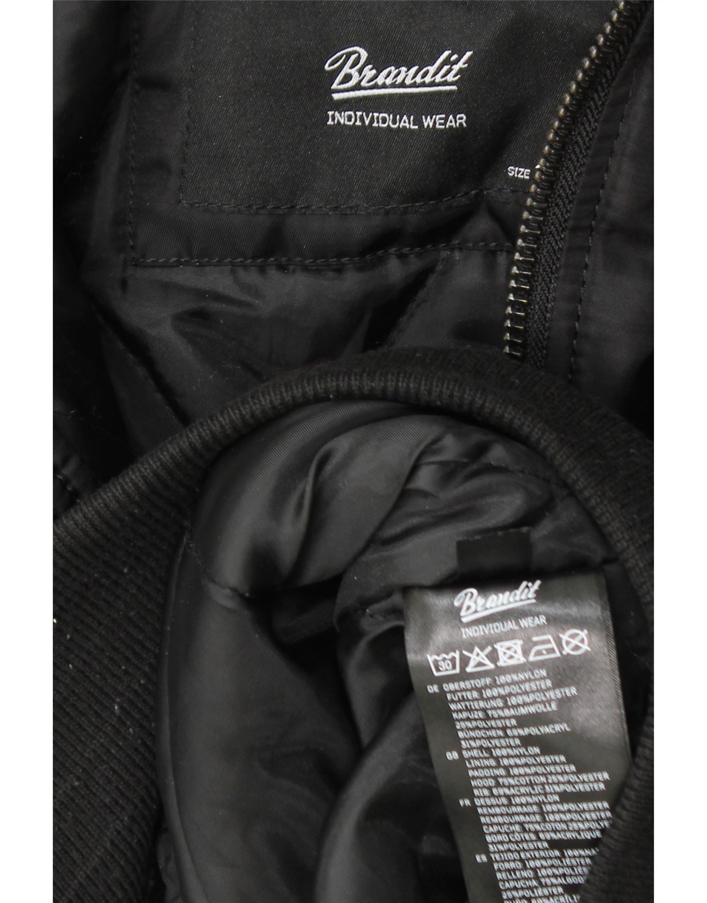 BRANDIT Bomberjakke med hætte til mænd UK 46 3XL Sort Nylon