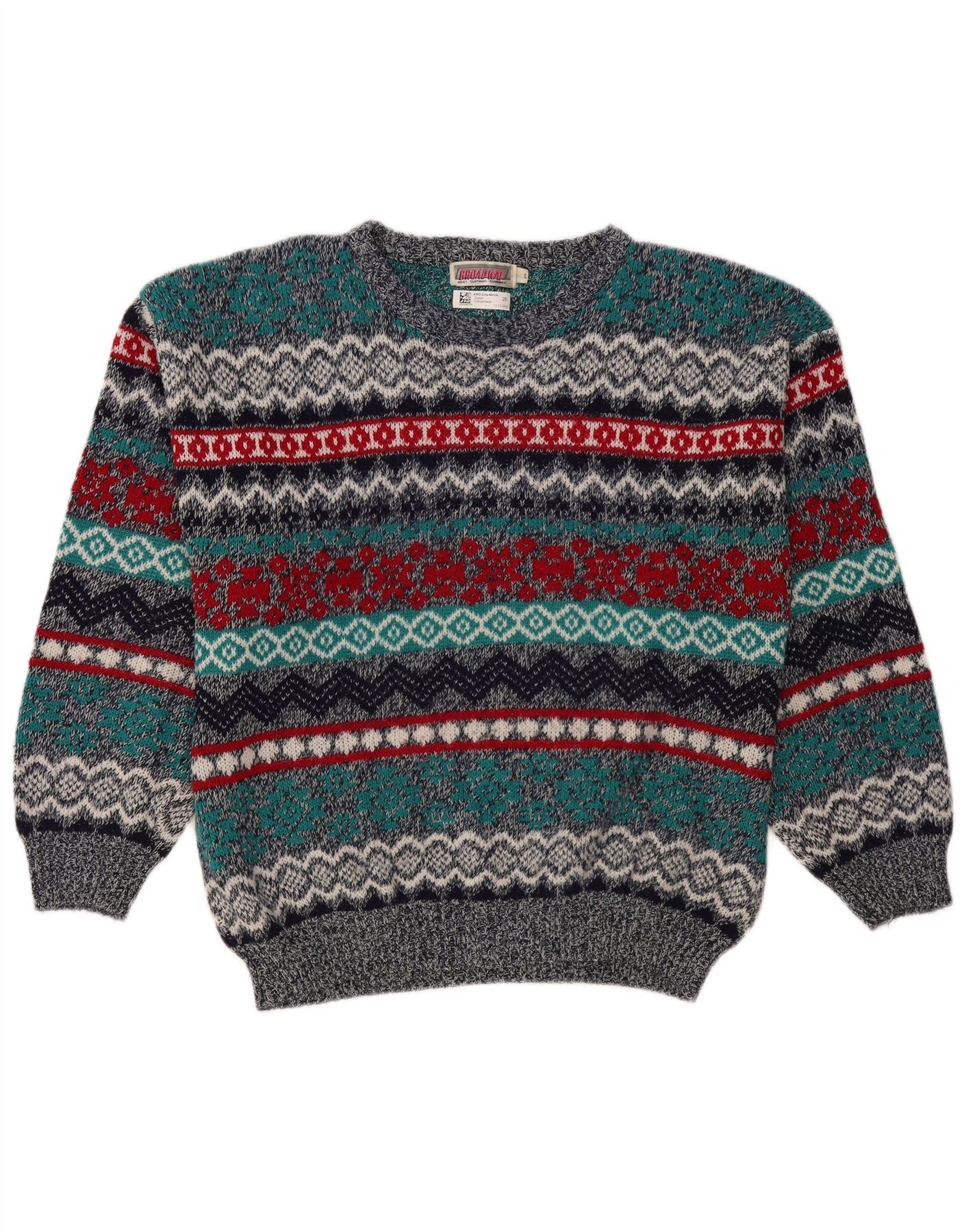 BROADWAY Herre Boat Neck Jumper Sweater Large Multicolored Fair Isle