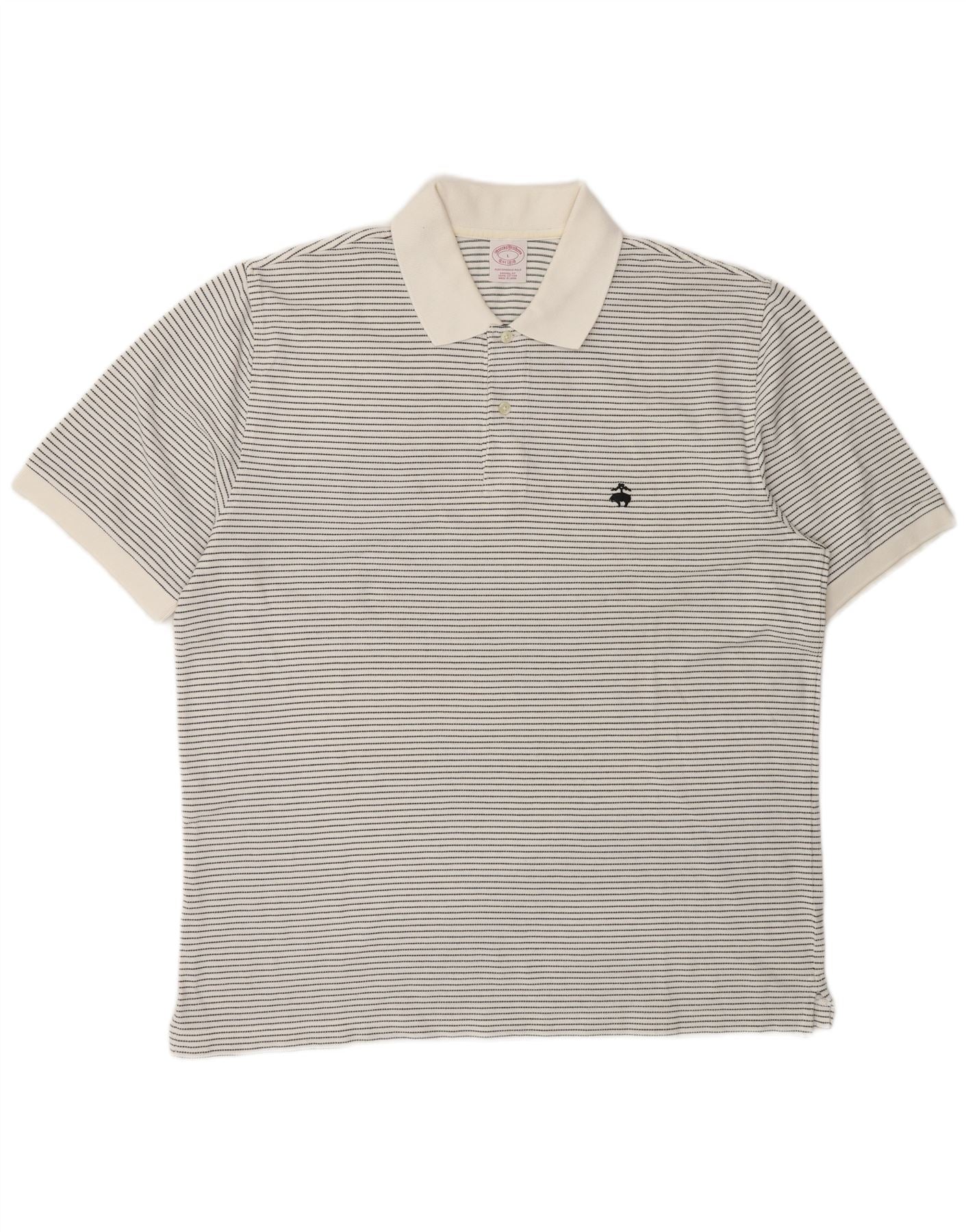 BROOKS BROTHERS Mens Original Fit Polo Shirt Large White Pinstripe Cotton