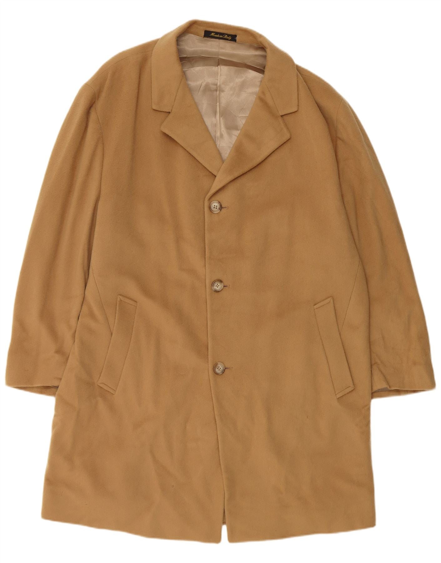 BROOKS BROTHERS Mens Overcoat UK 40 Large Beige Lambswool