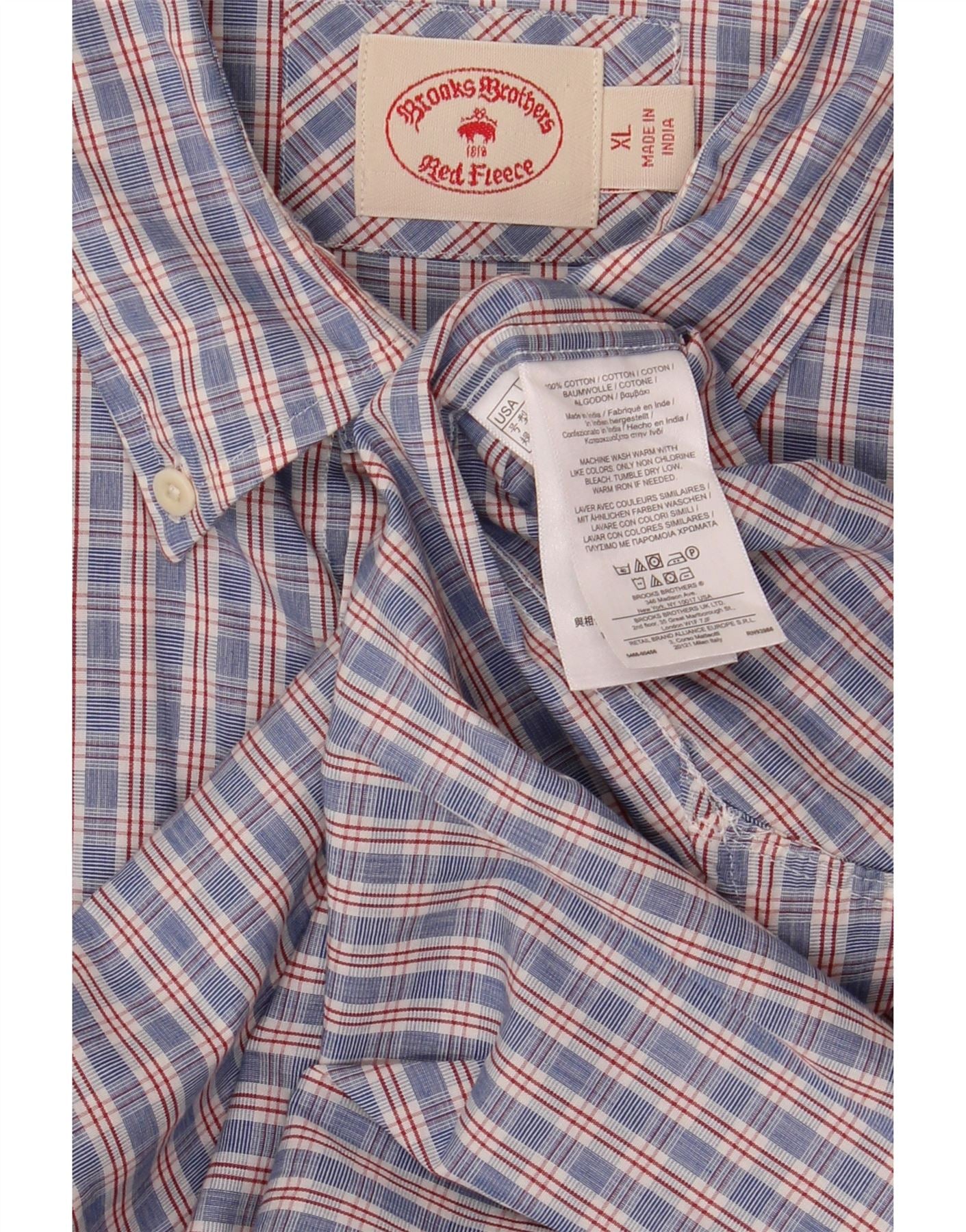 - AI beskrivelse: Denne Brooks Brothers herreskjorte er lavet af et åndbart vævet stof i bomuldsblanding. Den har et klassisk flerfarvet ternet mønster i blå, hvid og rød. Kraveudskæringen og fuld knap foran giver et tidløst look. Lange ærmer afsluttes med knappede manchetter. En normal pasform sikrer komfort og let bevægelse. Den indeholder praktiske lommer for ekstra brug.