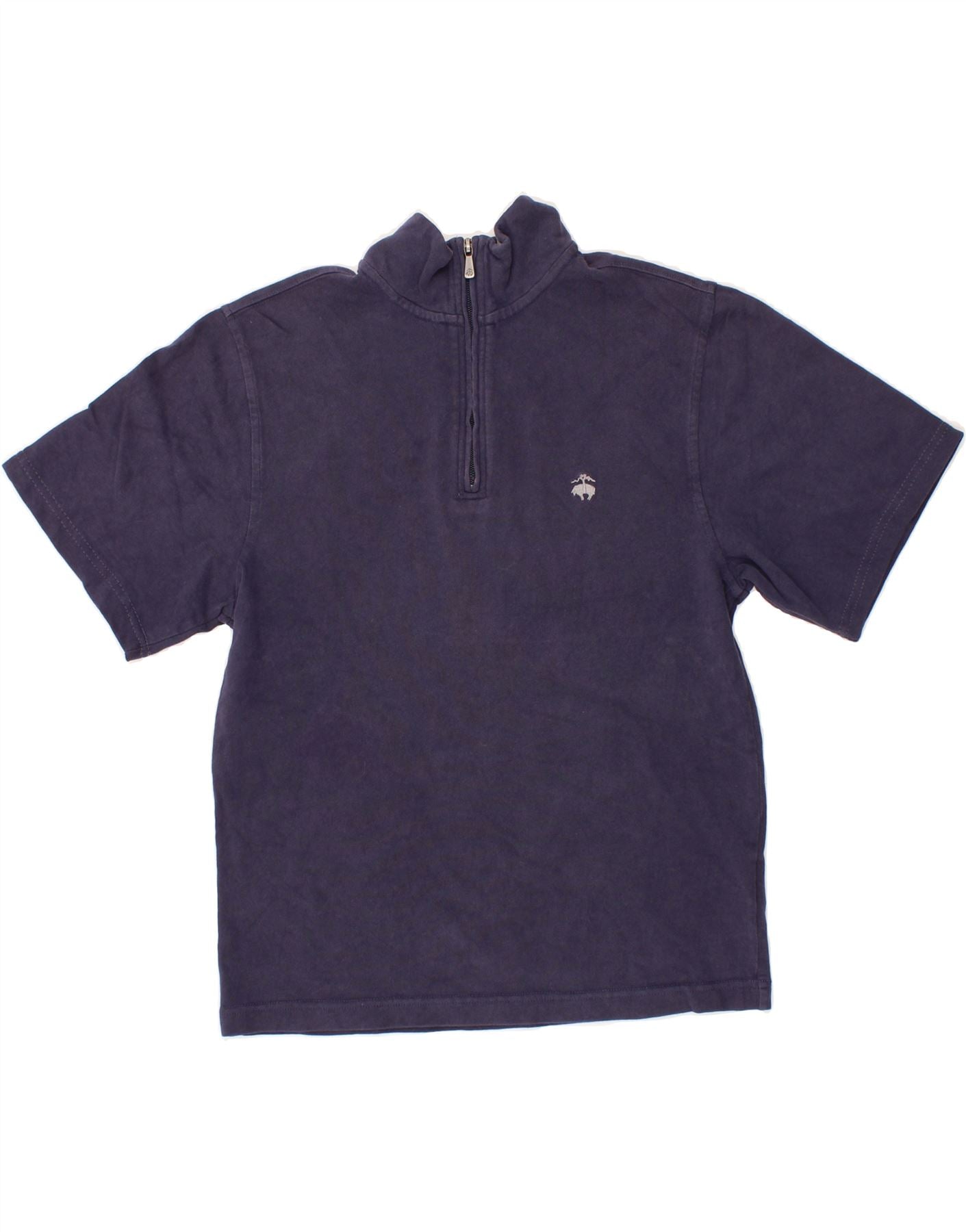 BROOKS BROTHERS Mens Zip Neck T-Shirt Top Small Navy Blue Cotton