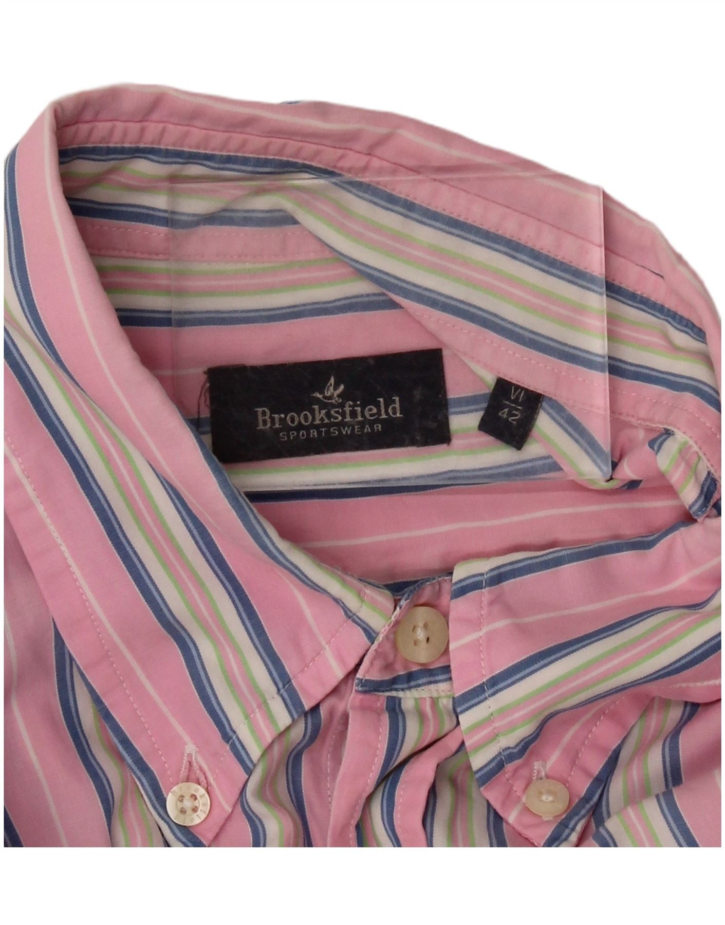 BROOKSFIELD Mens Short Sleeve Shirt Size 42 Large Pink Striped