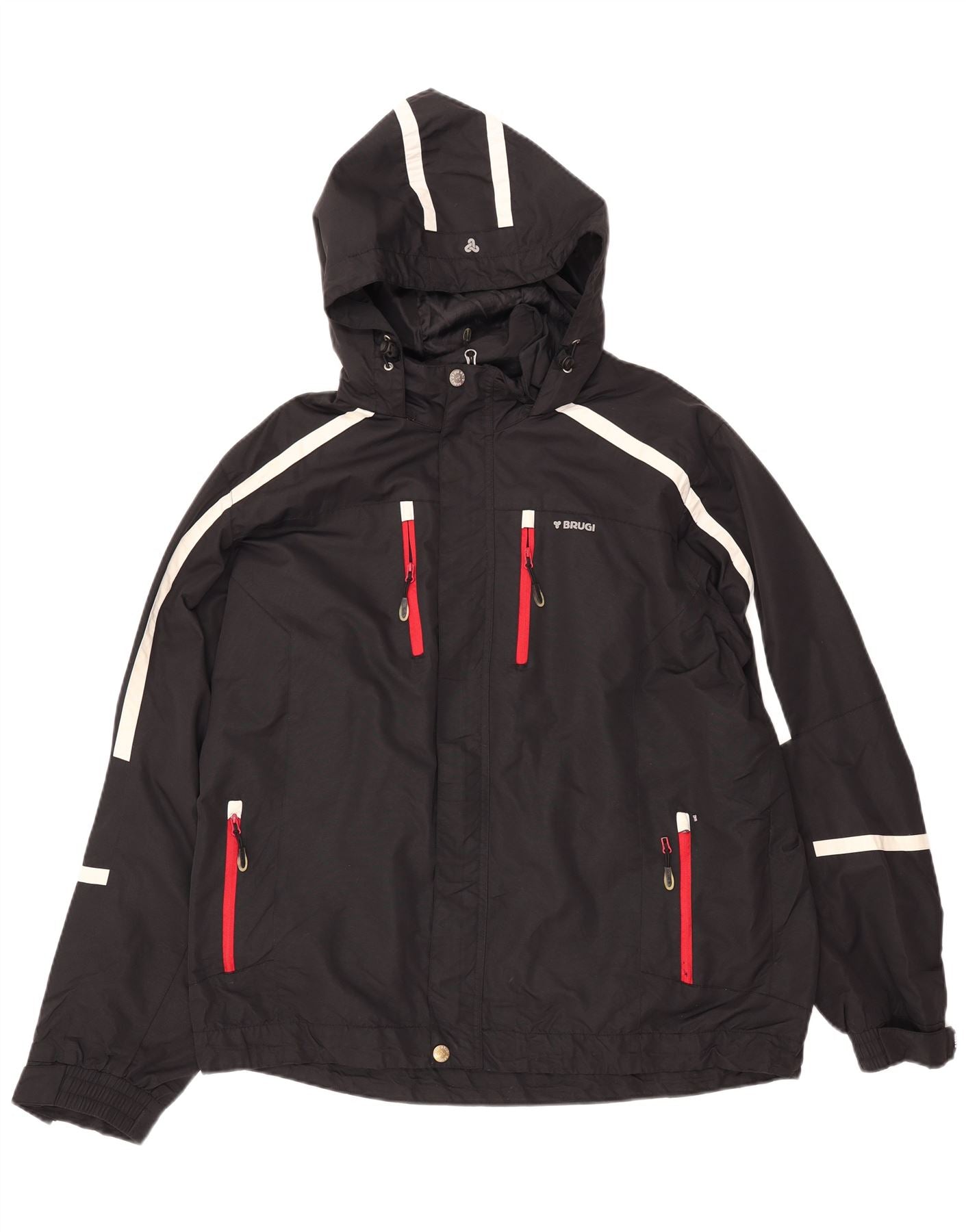 BRUGI Regnjakke med hætte til mænd UK 42 XL Sort Stribet