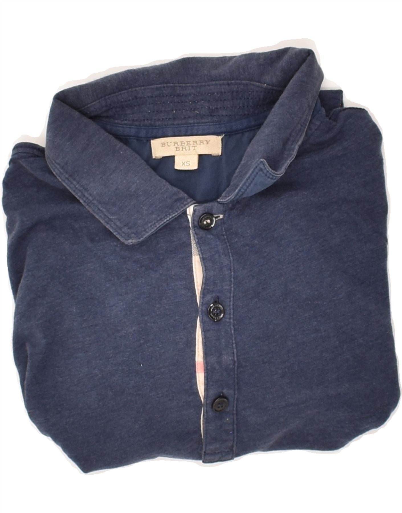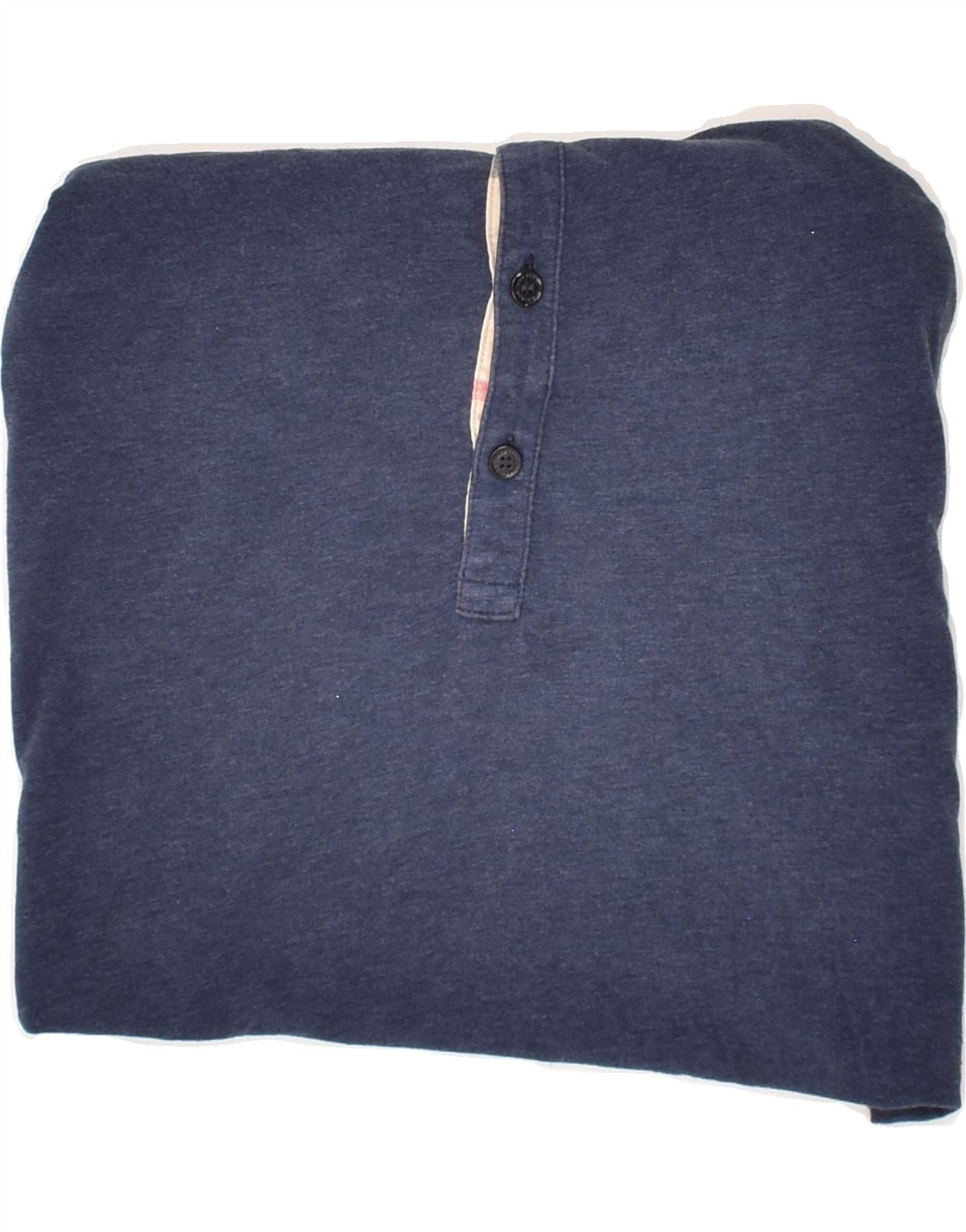 BURBERRY Mens Long Sleeve Polo Shirt XS Navy Blue Cotton