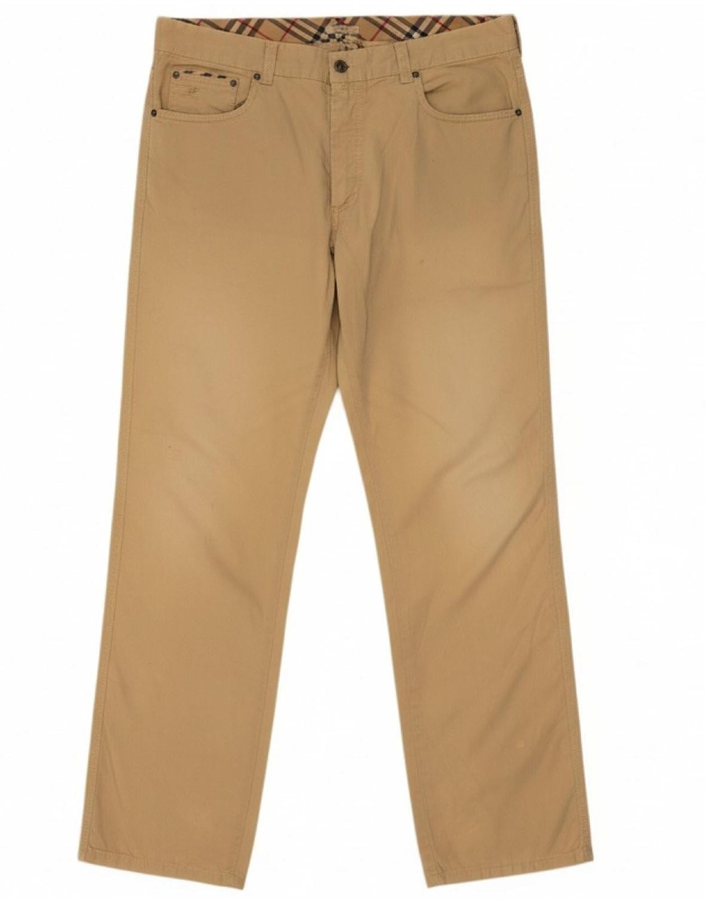 BURBERRY Mens Straight Casual Trousers W38 L35 Beige Cotton