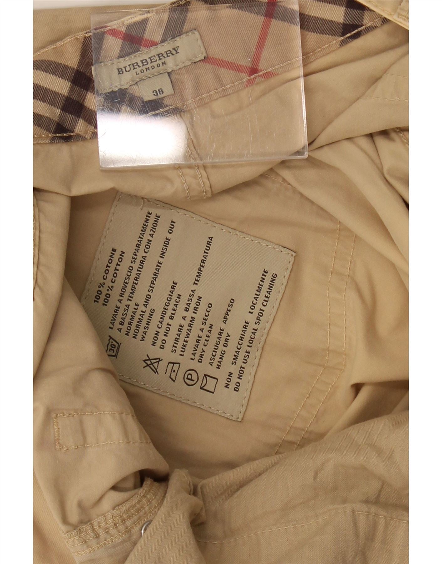 - AI Description: These Burberry mens chino trousers are crafted from 100 percent woven cotton in a versatile beige hue. They feature a classic regular fit for comfort and ease of movement. The button closure ensures a secure fastening. Practical pockets are included for functionality. This timeless design offers enduring style for everyday wear.