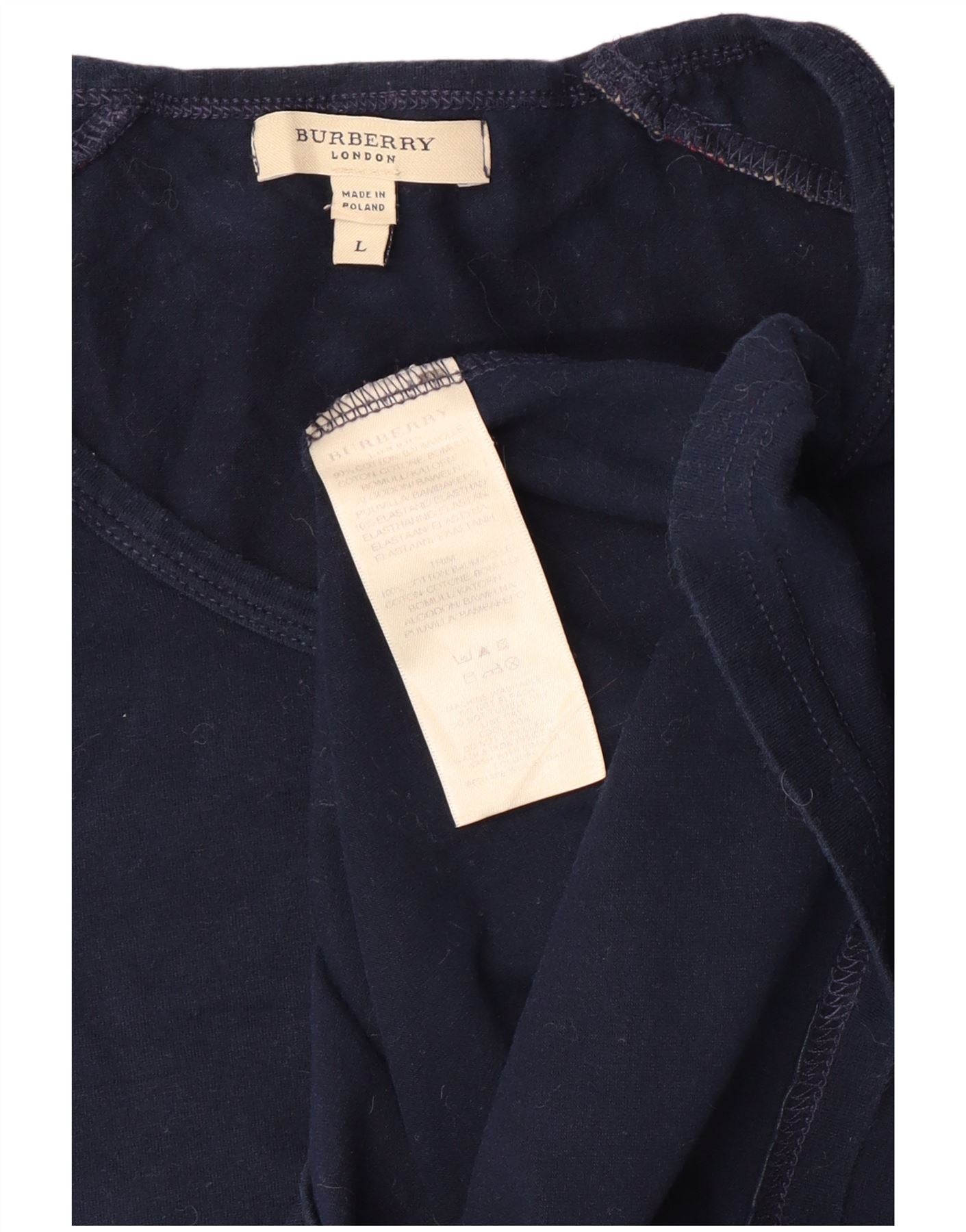 Burberry Dame Top 3/4 ærme UK 14 Large Navy Blue Colourblock Bomuld